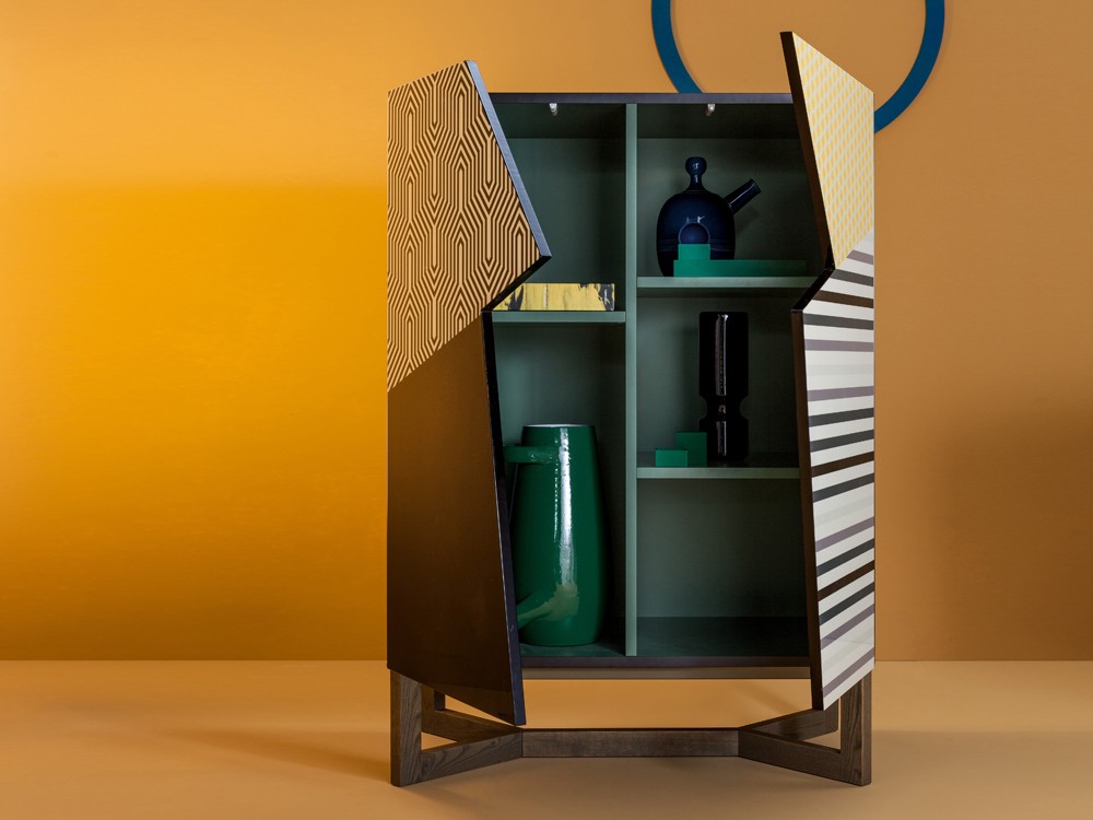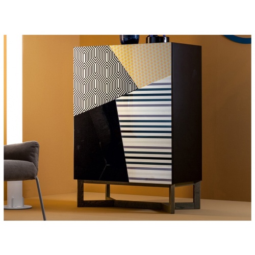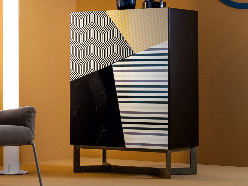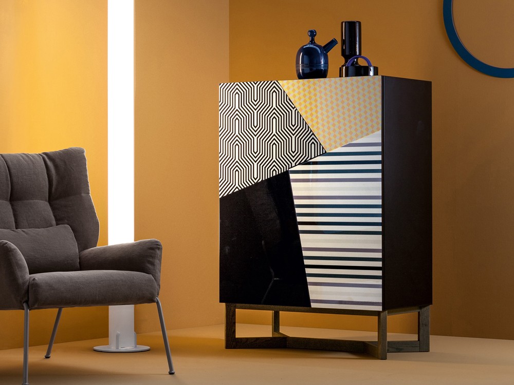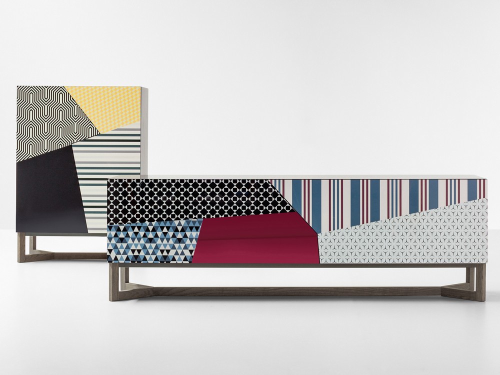 Combination of various brightly coloured graphic patterns that creates this particular optical effect.