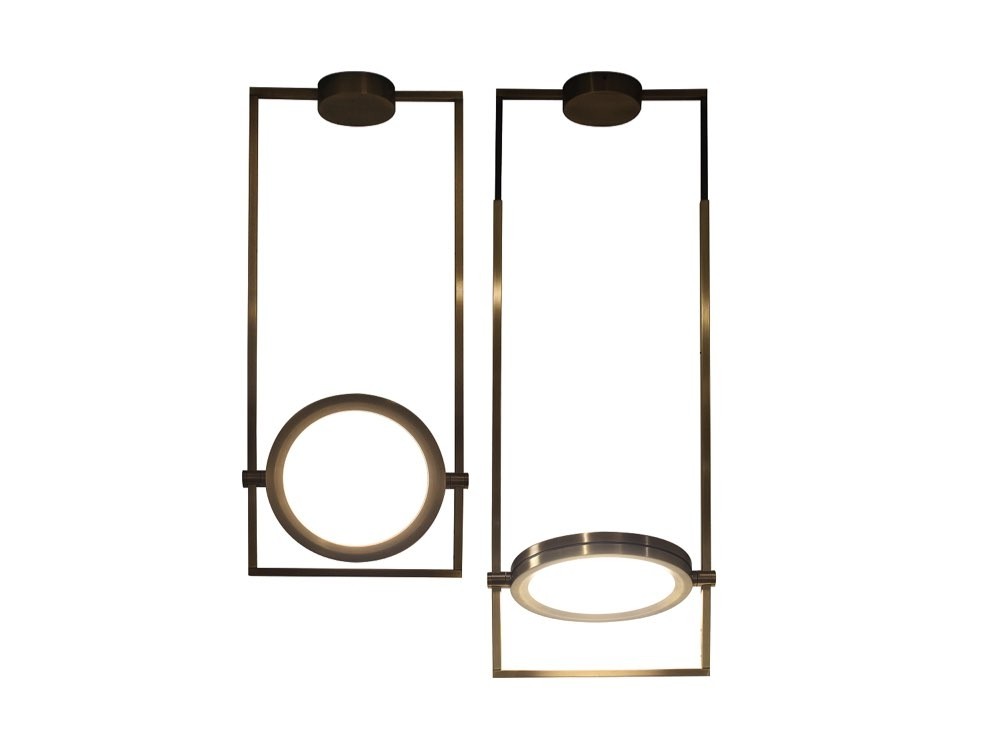 Dorian provides an imaginative update to the classic pendant light. The luminaire is concealed within an adjustable disc, one side of which acts as a diffuser. Positioned on the other side is a beautiful mirror that boosts luminosity while ensuring the lamp’s glamorous profile.
