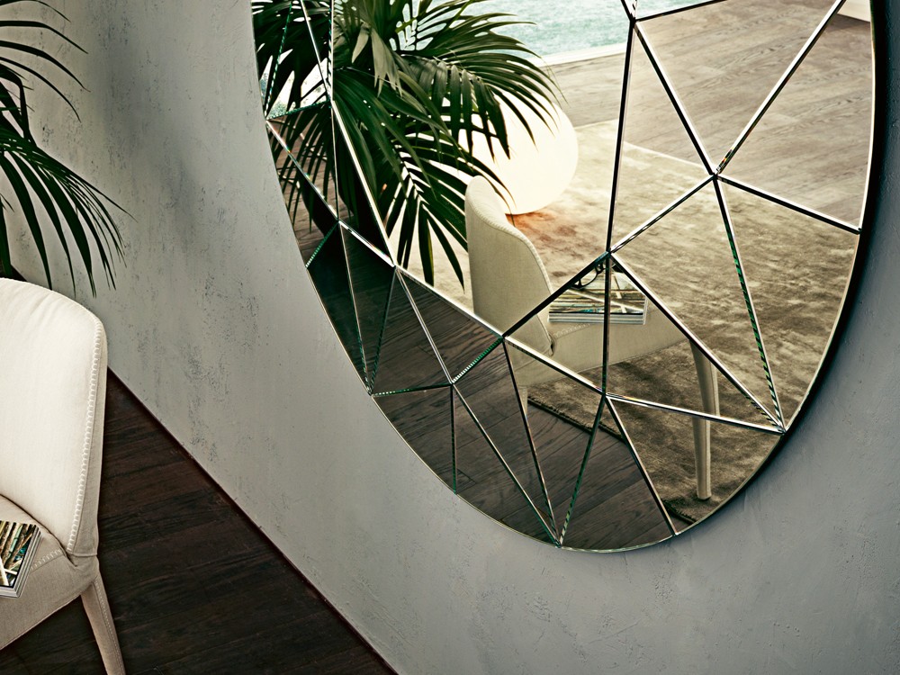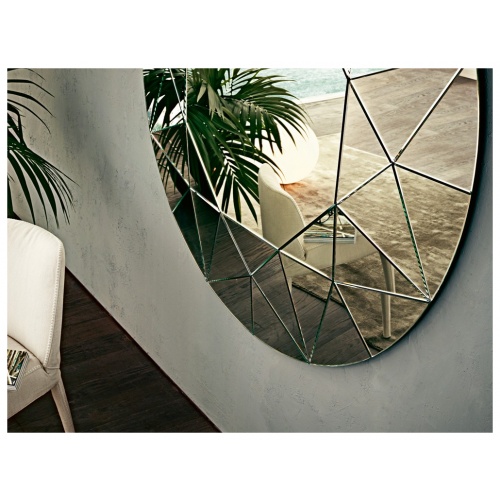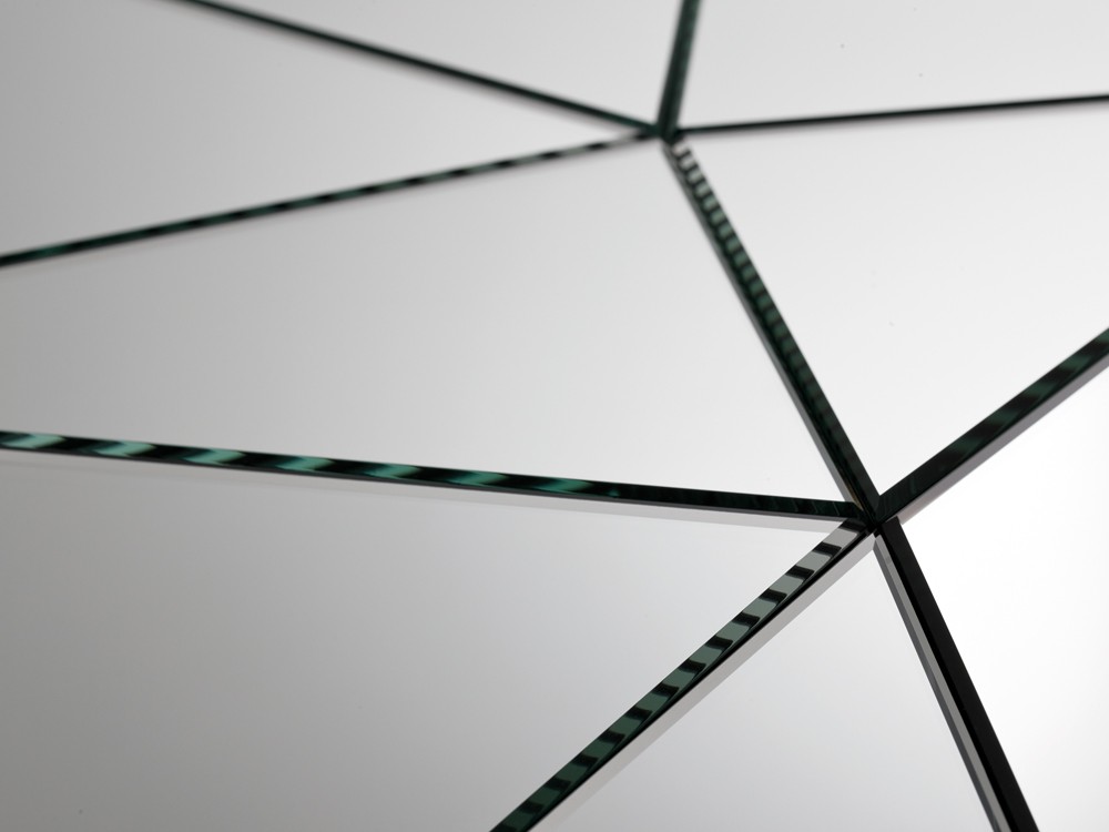 Add personality to any room with this stunning hand polished mirror with octagonal central part and frame composed of 40 inclined mirrors on different levels.