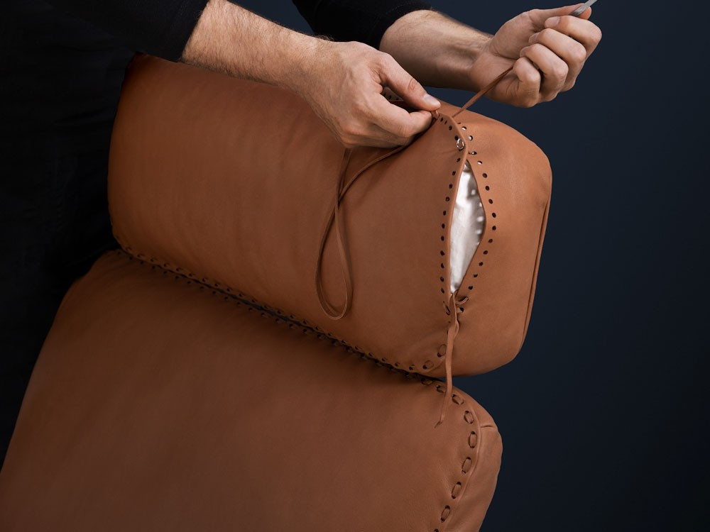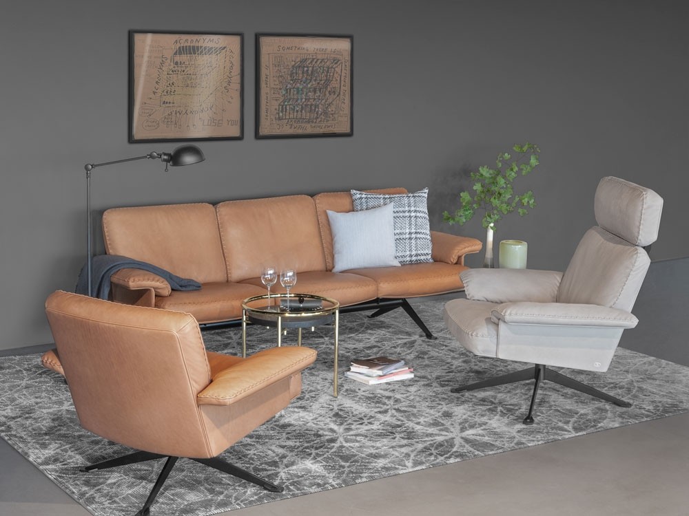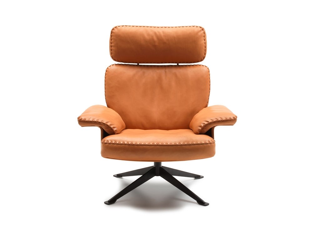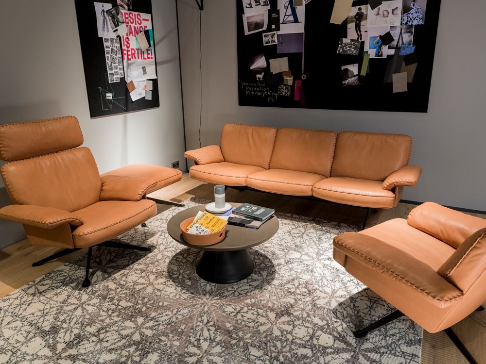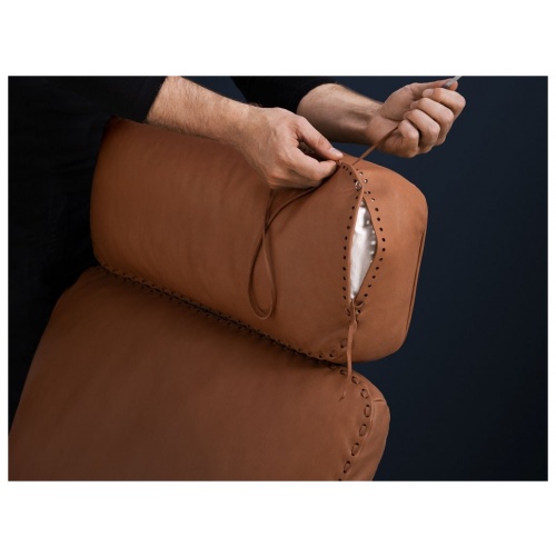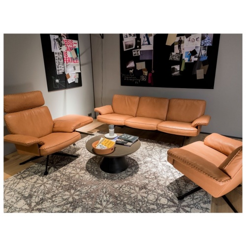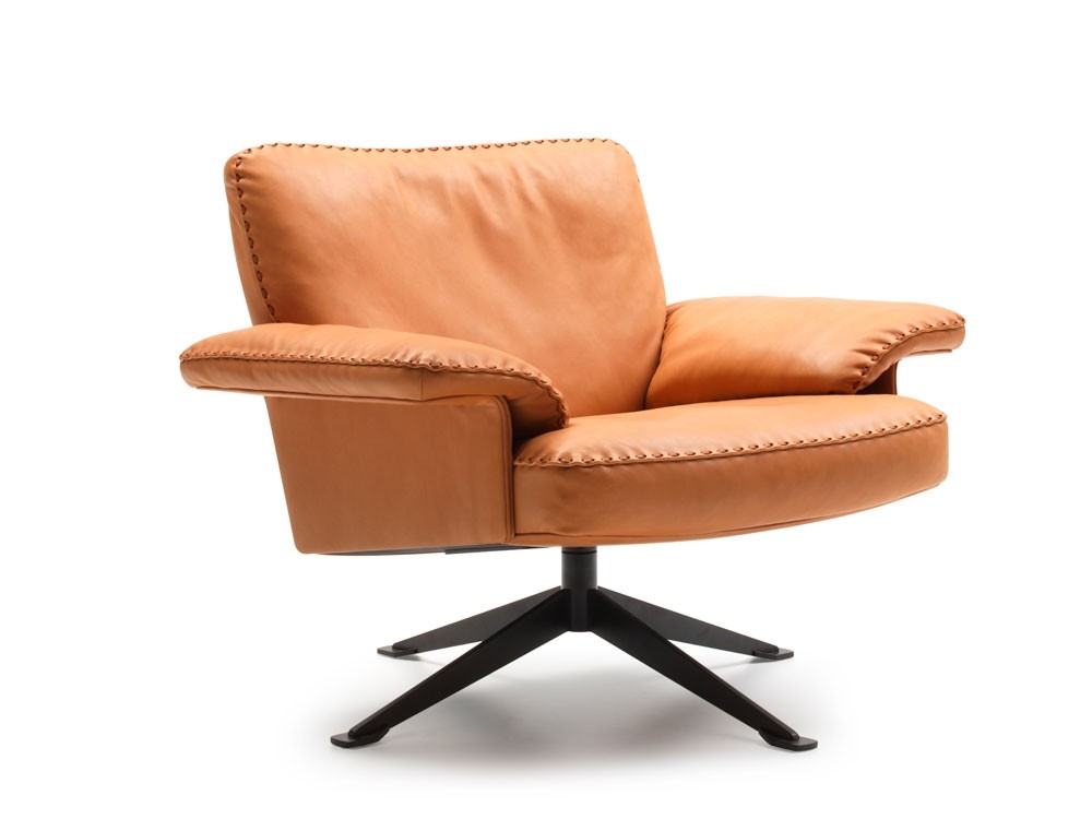 The DS-31 model series is one of the classics of De Sede manufacture. Where design, craftsmanship and leather expertise come together to form a timelessly beautiful item of upholstered furniture. The design presents itself in a light look: back and seat cushions rest on a thin, leather-covered wooden shell that is itself held aloft by a slender leg.