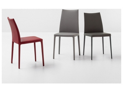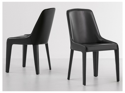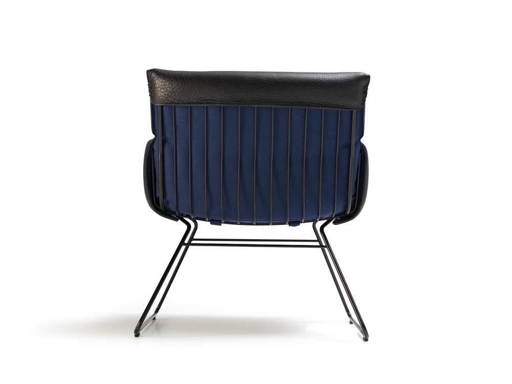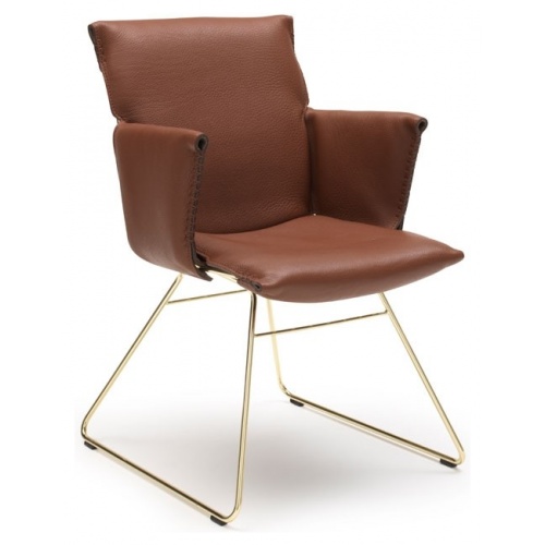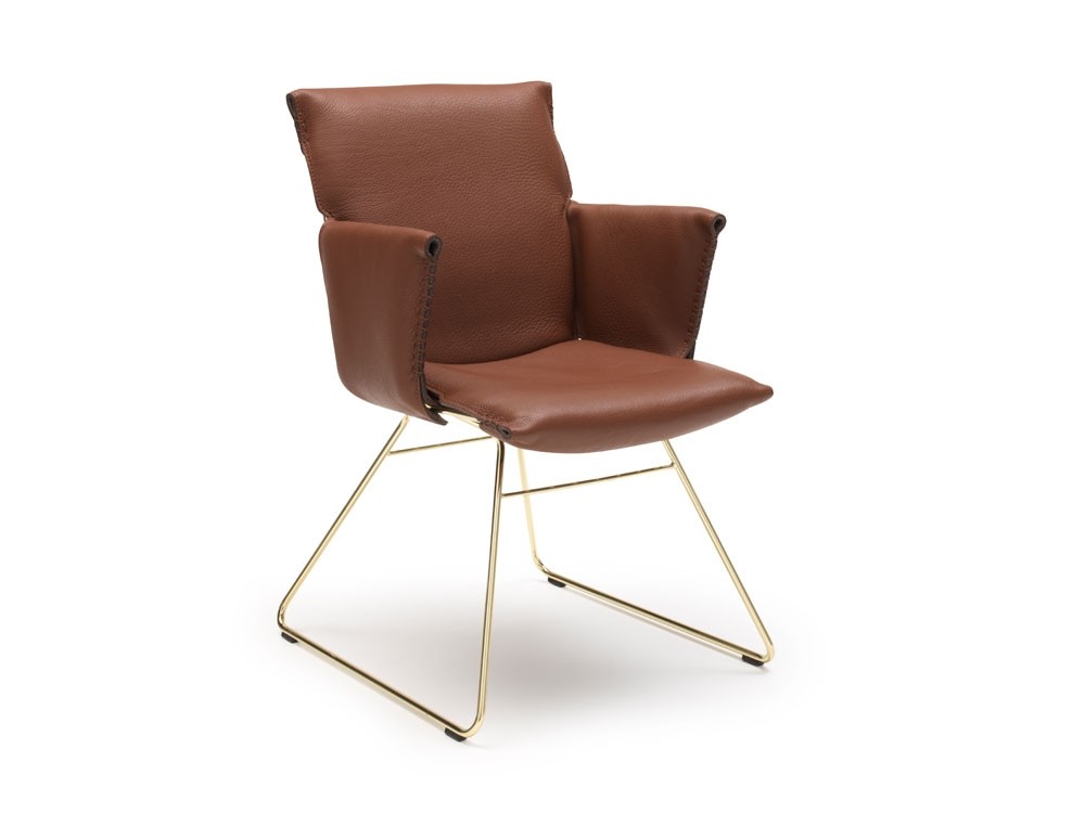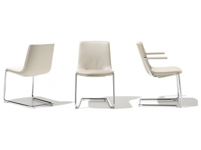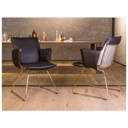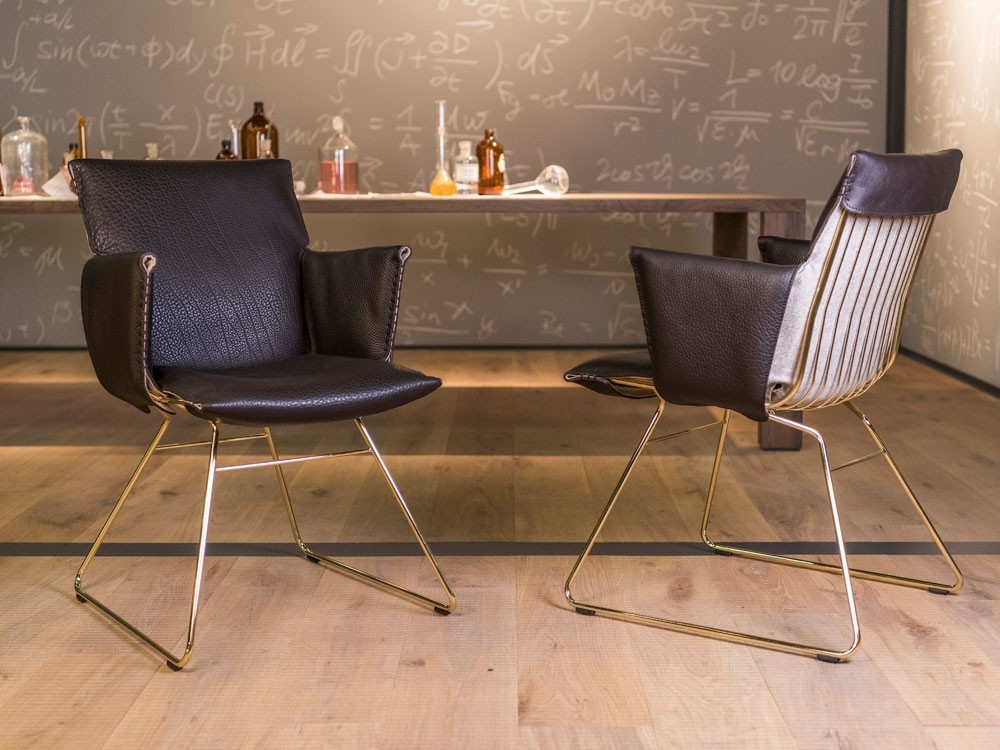 The folded and tucked leather defines the delicate design, masterful leather seams and sophisticated detailing. A textile insert in the back gives the chair a distinctive note, and the overall craftsmanship of the composition makes it a stylish companion at the dining table, in the home office or in the conference room.