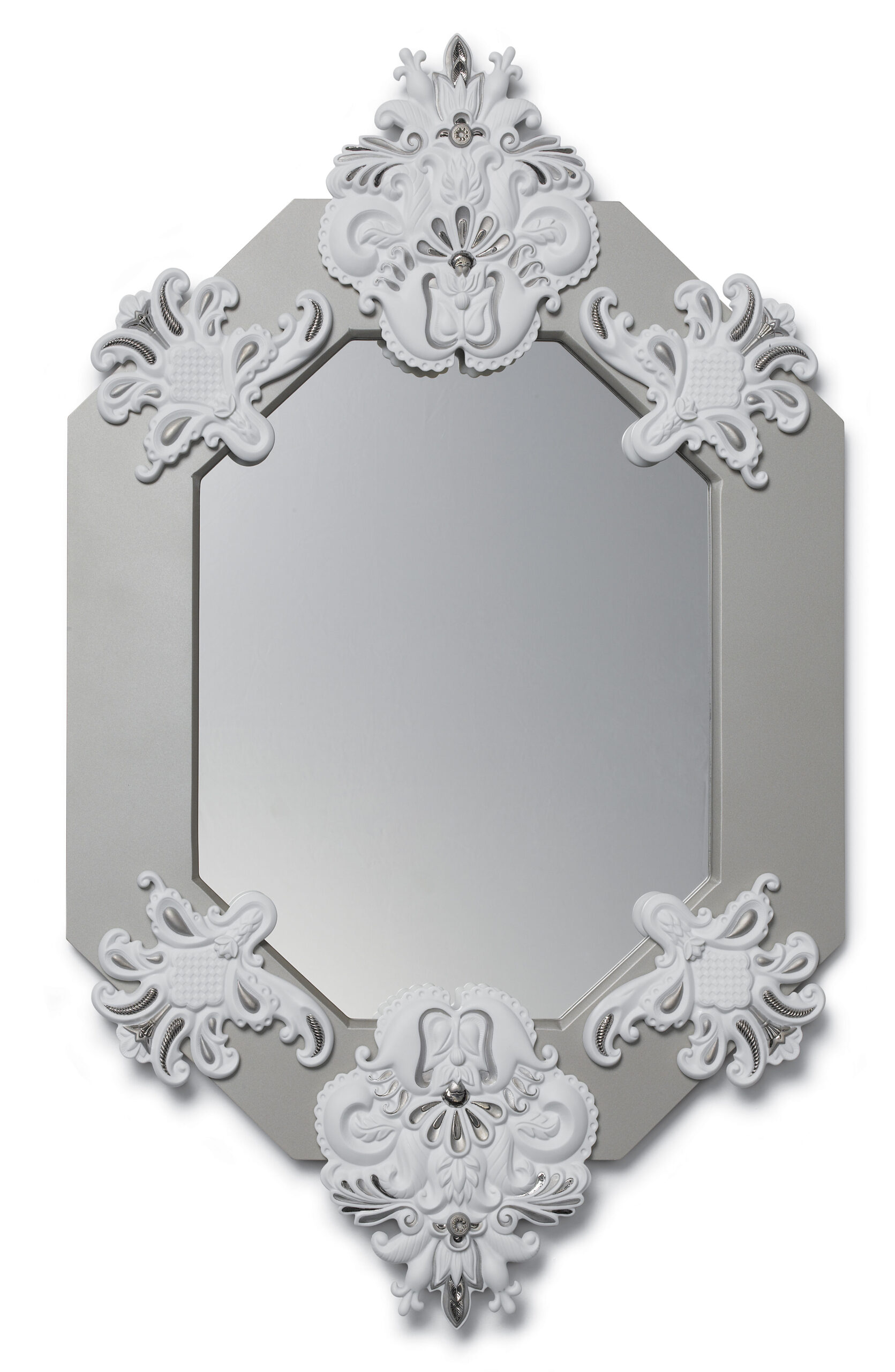 Eight Sided Wall Mirror. Silver Lustre and White. Limited Edition