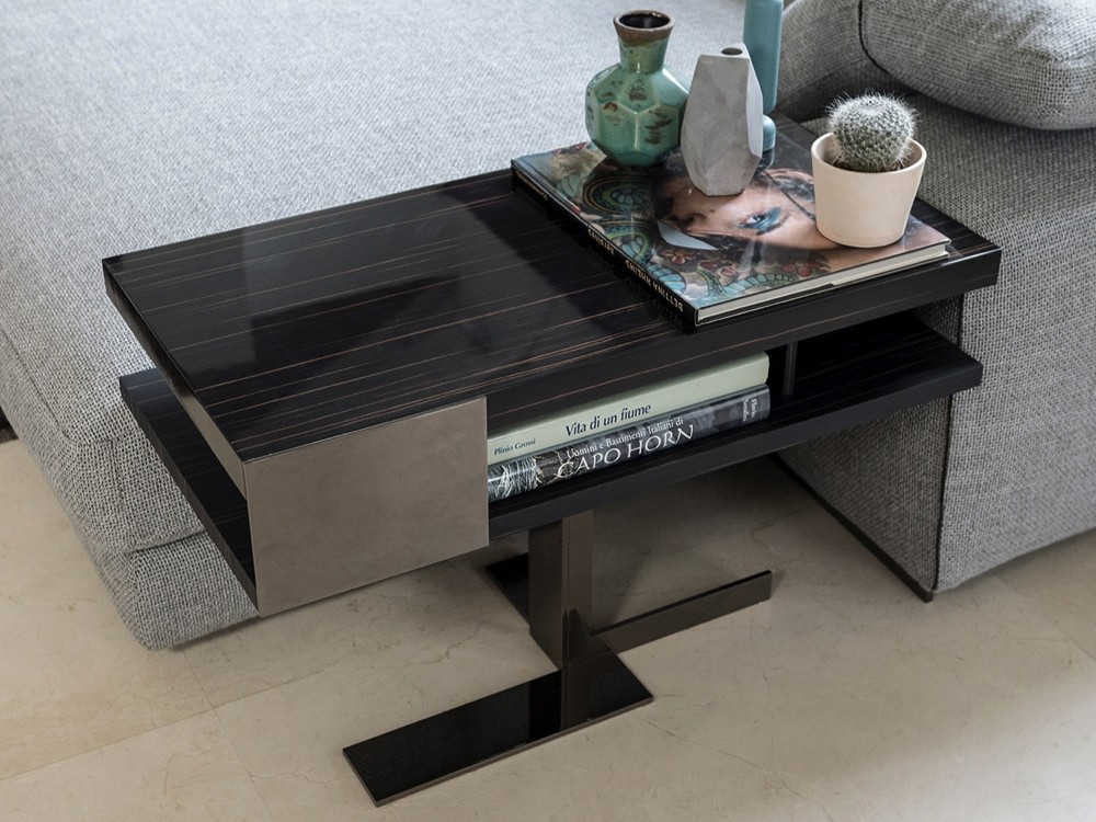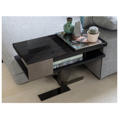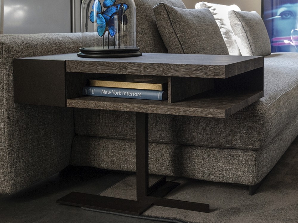 The Elas Side Table is the perfect accompaniment for your living room. All geometric forms and well-defined details, it unites the warmth and truthfulness of wood with more industrial polished metals.