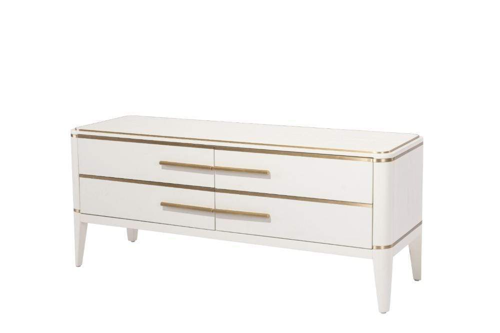 Colour : RVA white and antique brass finish, Depth : 40cm, Drawers : 4, Finish : RVA white and antique brass finish, Height : 51cm, Material : veneer and metal, Net Weight : 40kg, Width : 120cm