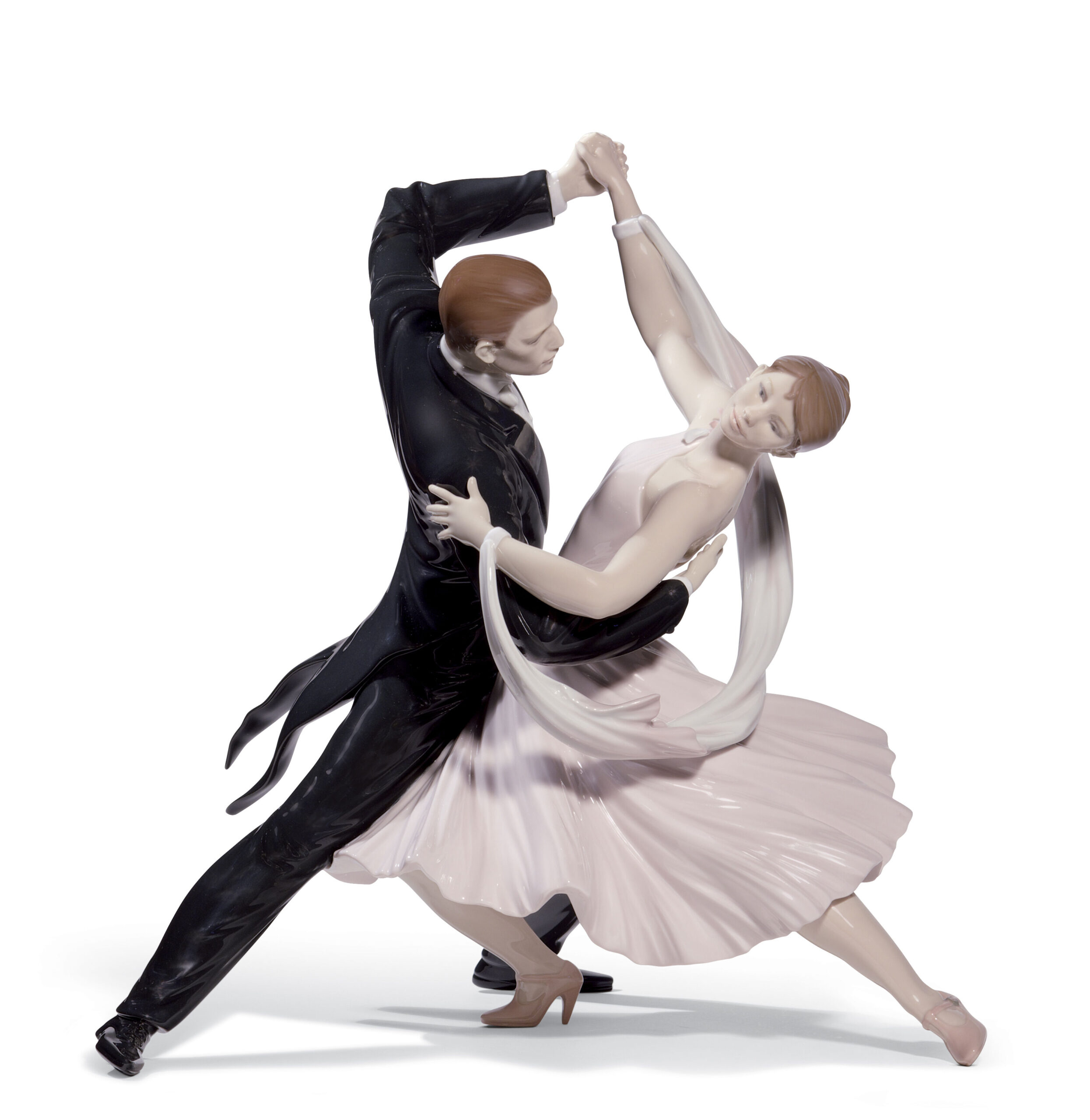 The foxtrot is a ballroom dance with vibrant, long and elegant movements. All these characteristics are faithfully reflected in this creation, which illustrates the harmonious balance of the dancing pair with exquisite realism and beauty. A glossy porcelain piece decorated in soft pastel colours, ideal as a gift to a lover of music and dance.