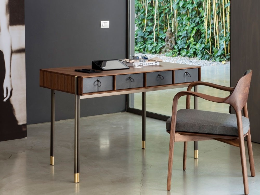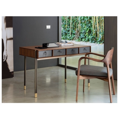 Two brothers, a single passion for objects, furnishings and design. Gabriele and Oscar Buratti have designed this luxury writing desk with four compartments in Canaletta walnut for Porada. Includes 4 matching leather drawers.
