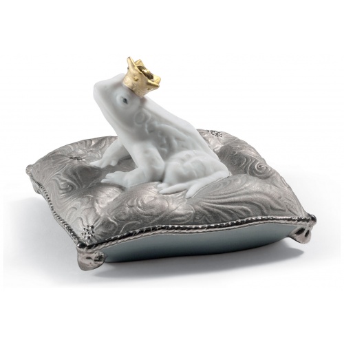 The Re-Deco concept gives a new life to the classic pieces of the LladrĂ³ catalogue through a new and striking decorative approach. This charming little frog, actually an enchanted prince, is given a much more contemporary style through the contrast between the matte white porcelain finish and the gold and silver lustres that highlight various parts of the piece.