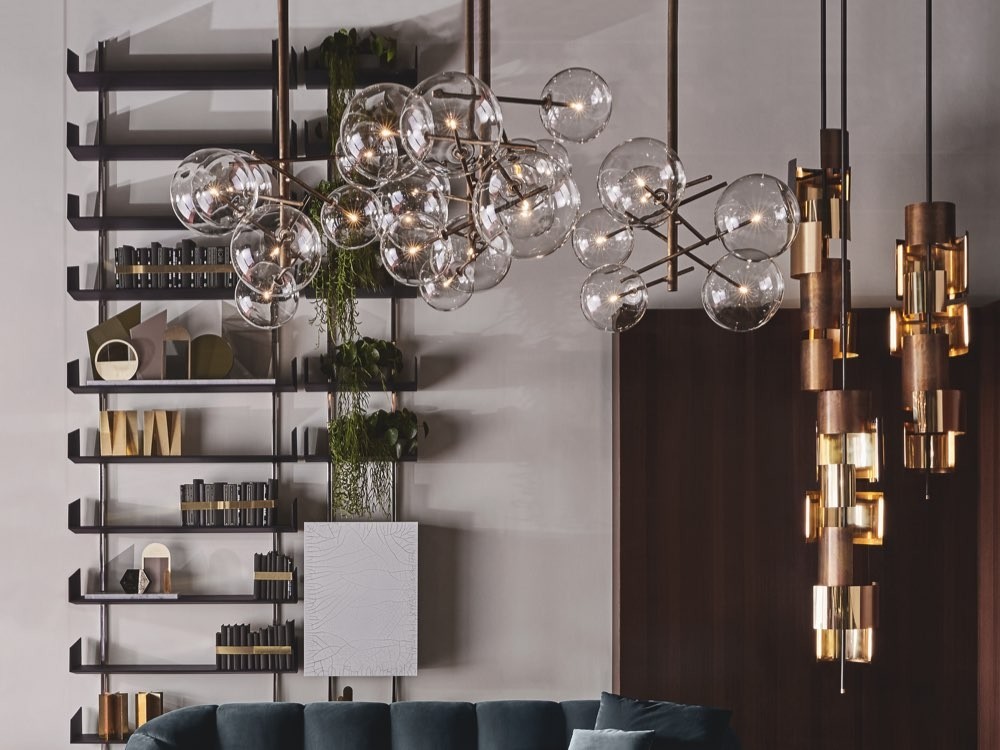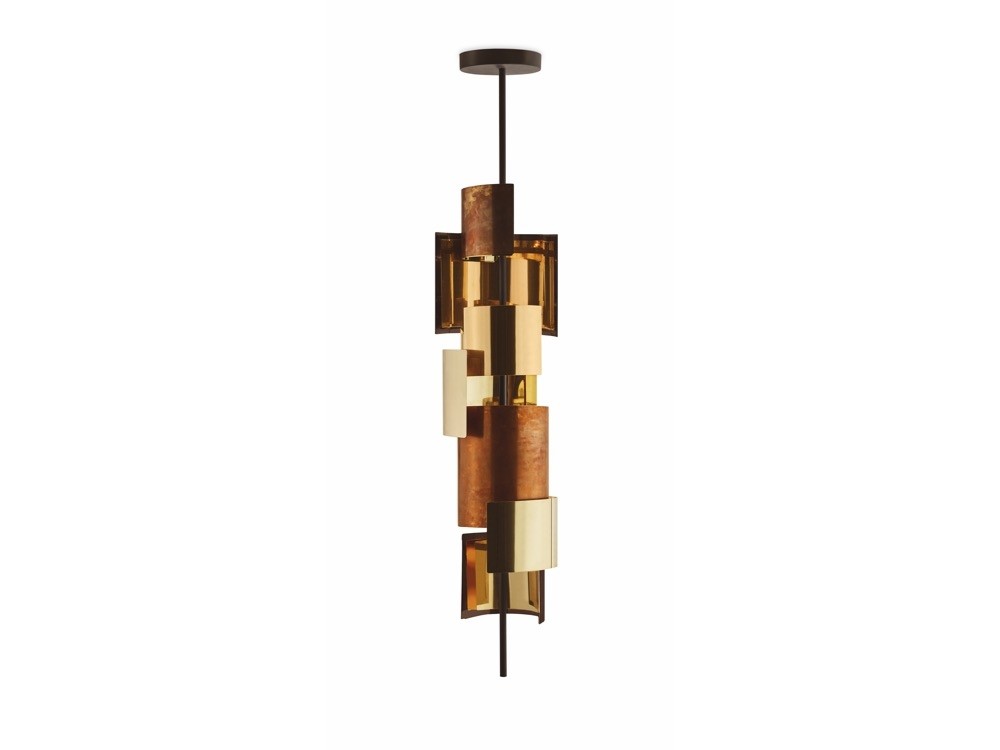 Eris is a glamorous pendant light for lovers of Italian design. Its cascading structure features a variety of burnished bronze and black chrome elements that promise to add warmth and luminosity to any space.