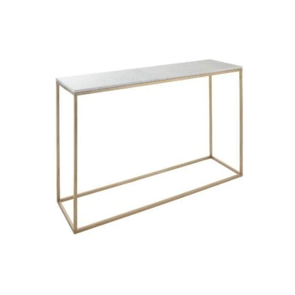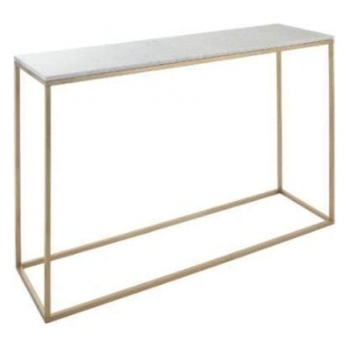 • Console table, brushed gold finish frame with white marble top.