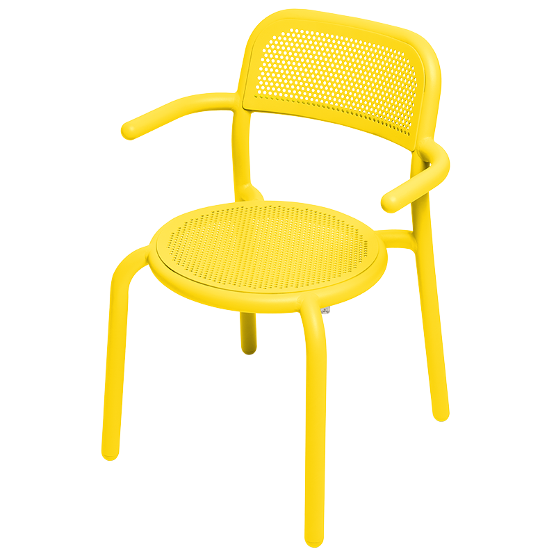 Toní Armchair is a robust garden chair with a nod to the classic bistro chair. Made of high-quality aluminum and provided with the highest standard outdoor coating, the Toní Armchair is stainless, colorfast, and resistant to all weather types.Feel free to lift the Toní Armchair and discover how light it is. Comes in handy, as you can easily stack up to four chairs.Item103814EAN8719773029935