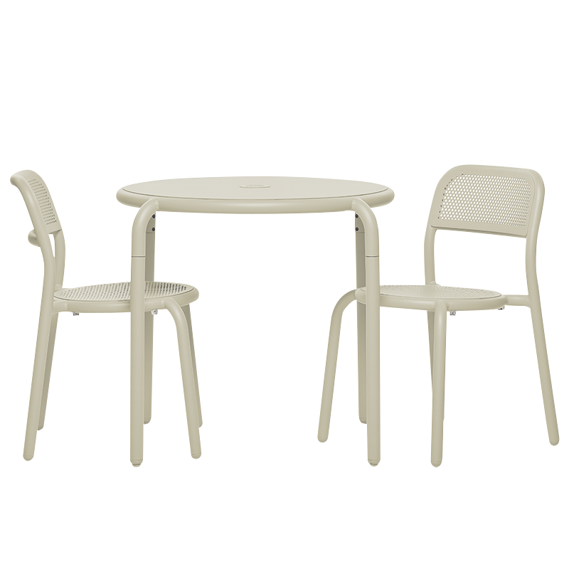 The Toní Chair is the ideal chair for every garden or terrace. The approachable design is a playful nod to the classic bistro chair. Its lightweight aluminum frame makes the chair easy to move. You can also stack up to four Toní chairs! Ideal to quickly create a new terrace arrangement, or if you end up having more guests over for your barbecue. Toní is the ultimate place to relax.Create your ideal terrace arrangement by combining this chair with the Toní Tablo or the Toní Bistreau. Available in a variety of colors so you can mix and match endlessly. The entire Toní collection features a high-quality outdoor coating that meets the highest standards, so it’s stainless, UV-resistant, and weatherproof.Item103806EAN8719773029850