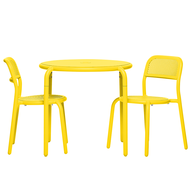 The Toní Chair is the ideal chair for every garden or terrace. The approachable design is a playful nod to the classic bistro chair. Its lightweight aluminum frame makes the chair easy to move. You can also stack up to four Toní chairs! Ideal to quickly create a new terrace arrangement, or if you end up having more guests over for your barbecue. Toní is the ultimate place to relax.Create your ideal terrace arrangement by combining this chair with the Toní Tablo or the Toní Bistreau. Available in a variety of colors so you can mix and match endlessly. The entire Toní collection features a high-quality outdoor coating that meets the highest standards, so it’s stainless, UV-resistant, and weatherproof.Item103809EAN8719773029881