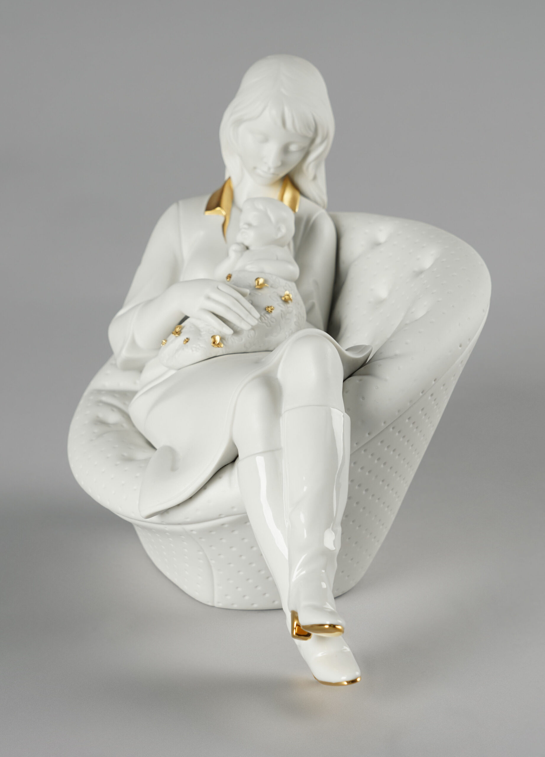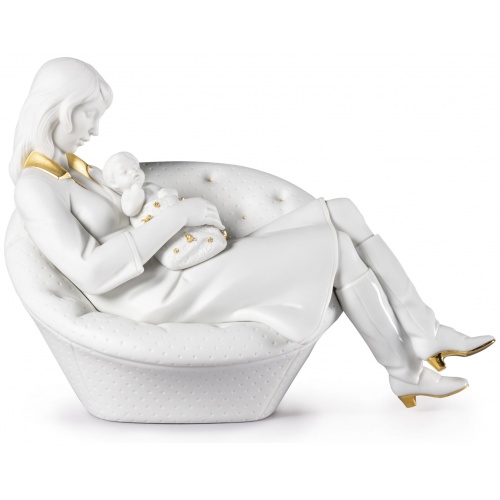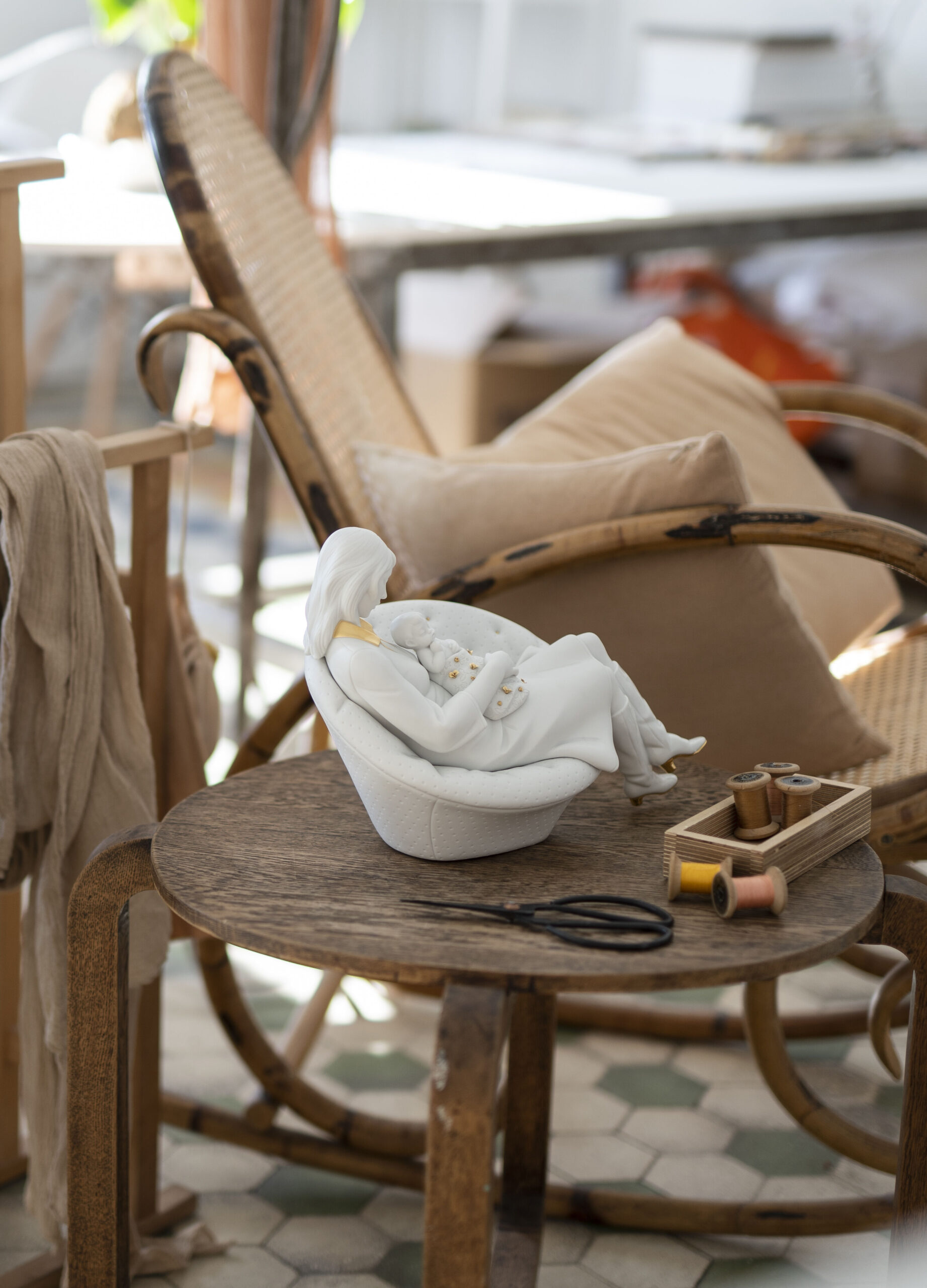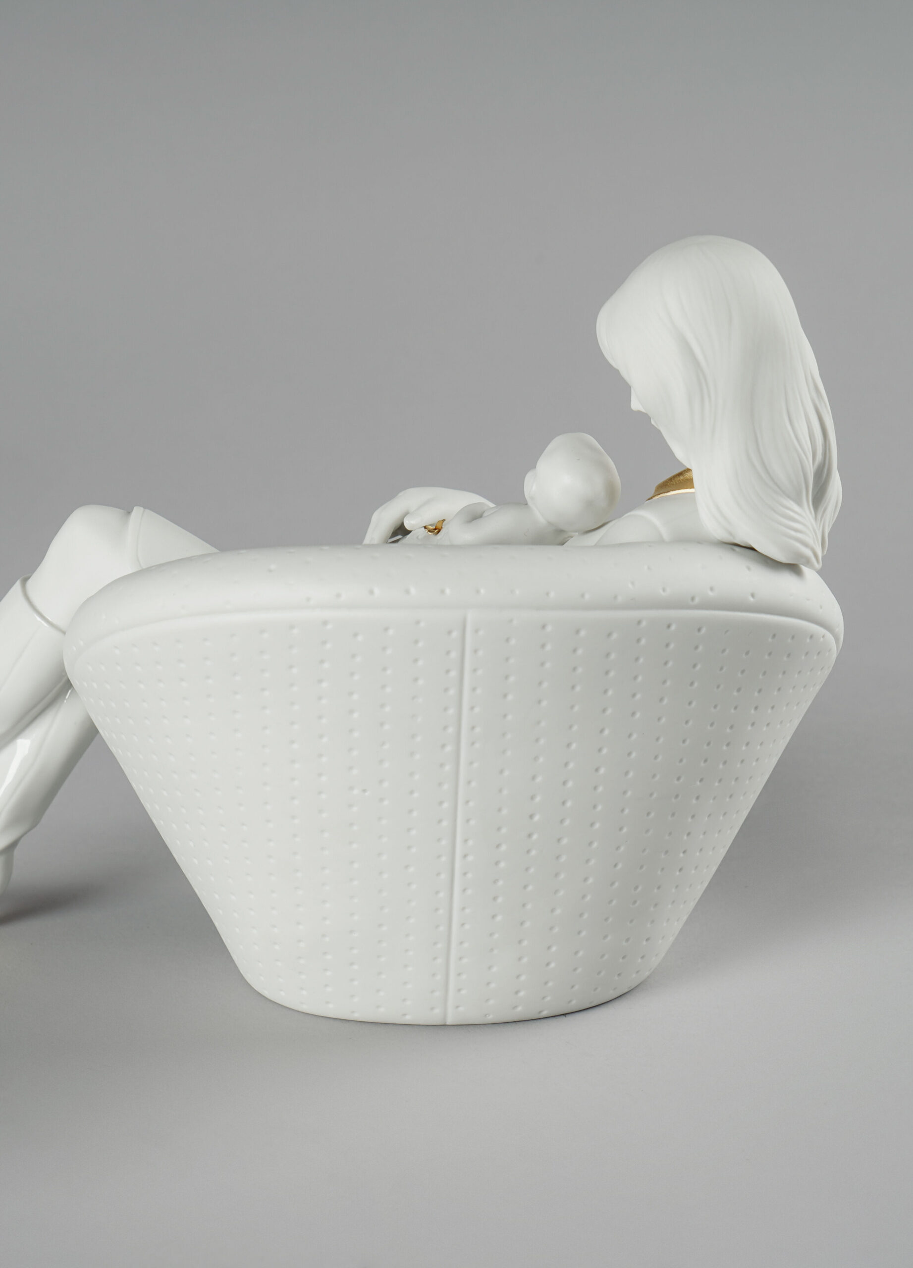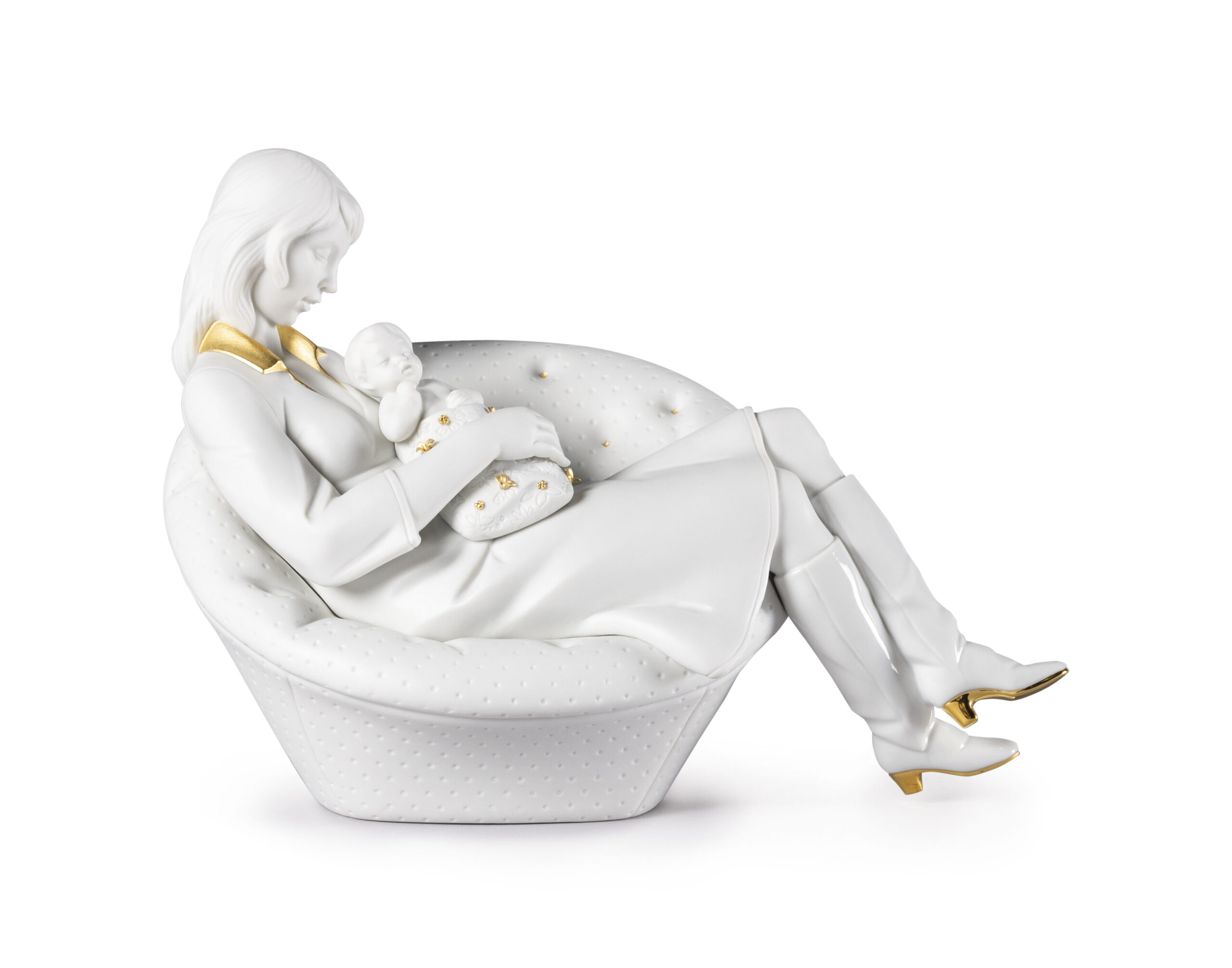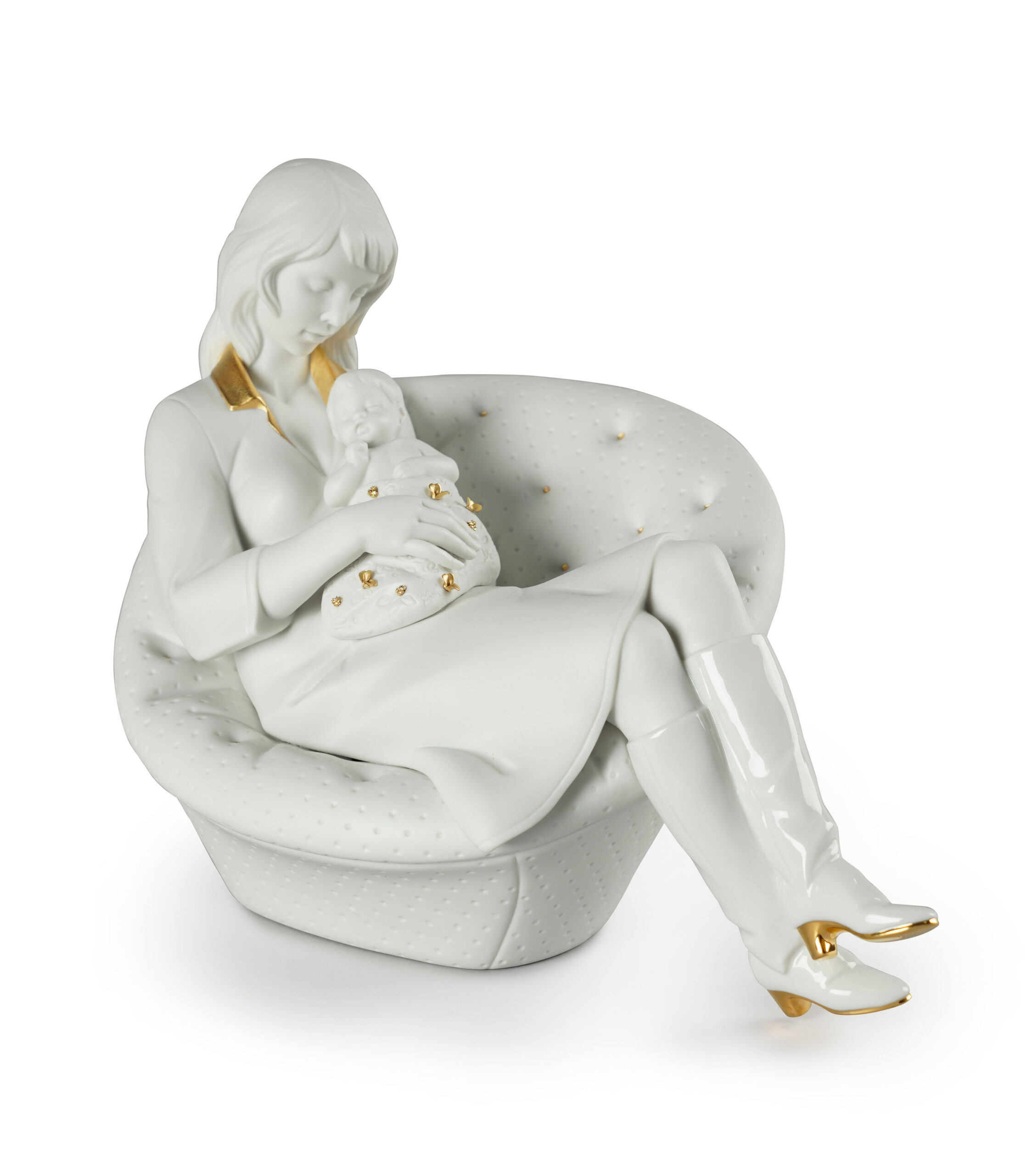 Motherhood is a constant source of inspiration for LladrĂ³ artists, addressed in this piece though a contemporary optic. A white matte and glazed porcelain piece decorated solely with touches of golden luster. Perfect for a gift for a mother. Handcrafted in Spain.
