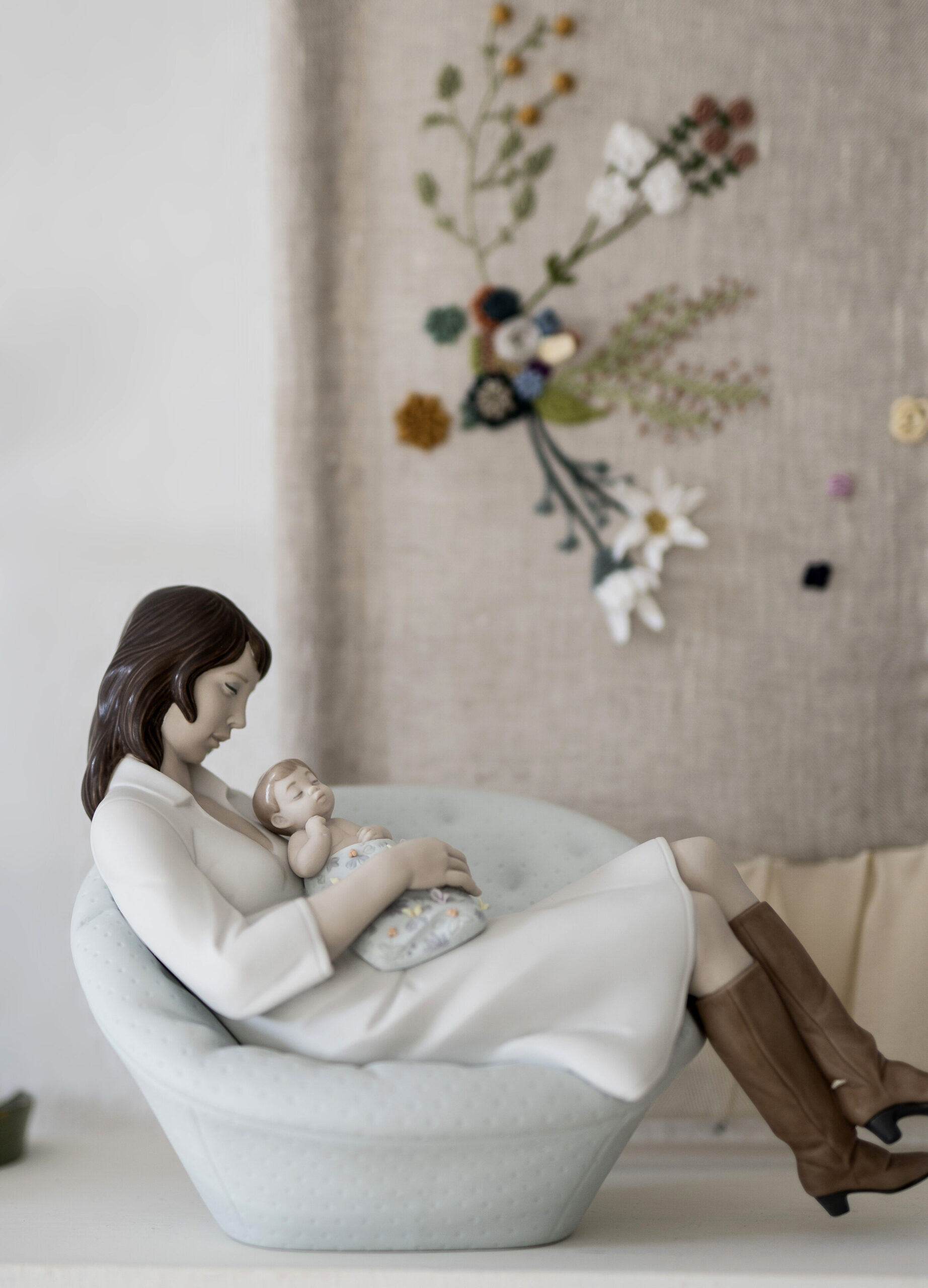 Motherhood is a constant source of inspiration for LladrĂ³ artists, addressed in this piece though a contemporary optic. A matte porcelain piece decorated in intense colors, perfect for a gift for a mother. Handcrafted in Spain.