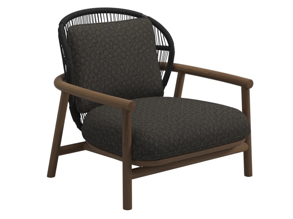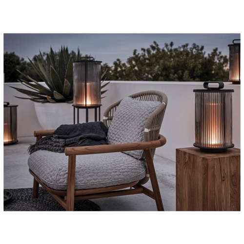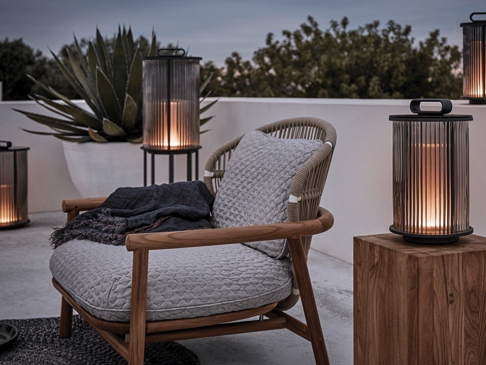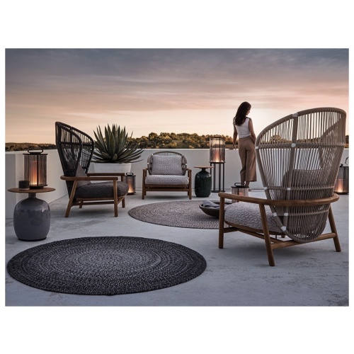Inspired by the delicate fronds of an unfurling leaf, the Fern Chair by Sebastian Herkner is a stately yet cosy outdoor lounge chair. Harnessing natural materials such as teak and rope, it creates the impression that one is being enveloped by Mother Nature herself.