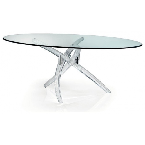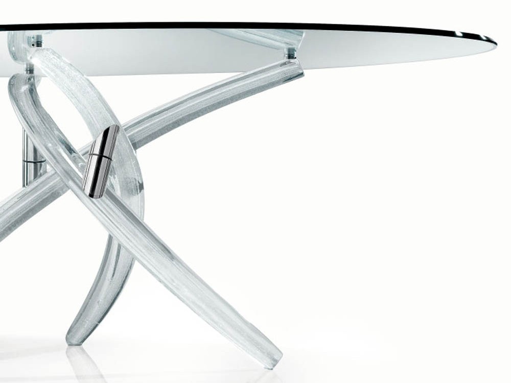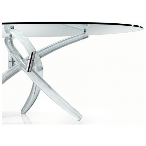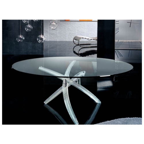 Elegant dining table designed by Tulczinsky for Reflex Angelo, the Fili D’erba features an abstract base crafted from glass.
