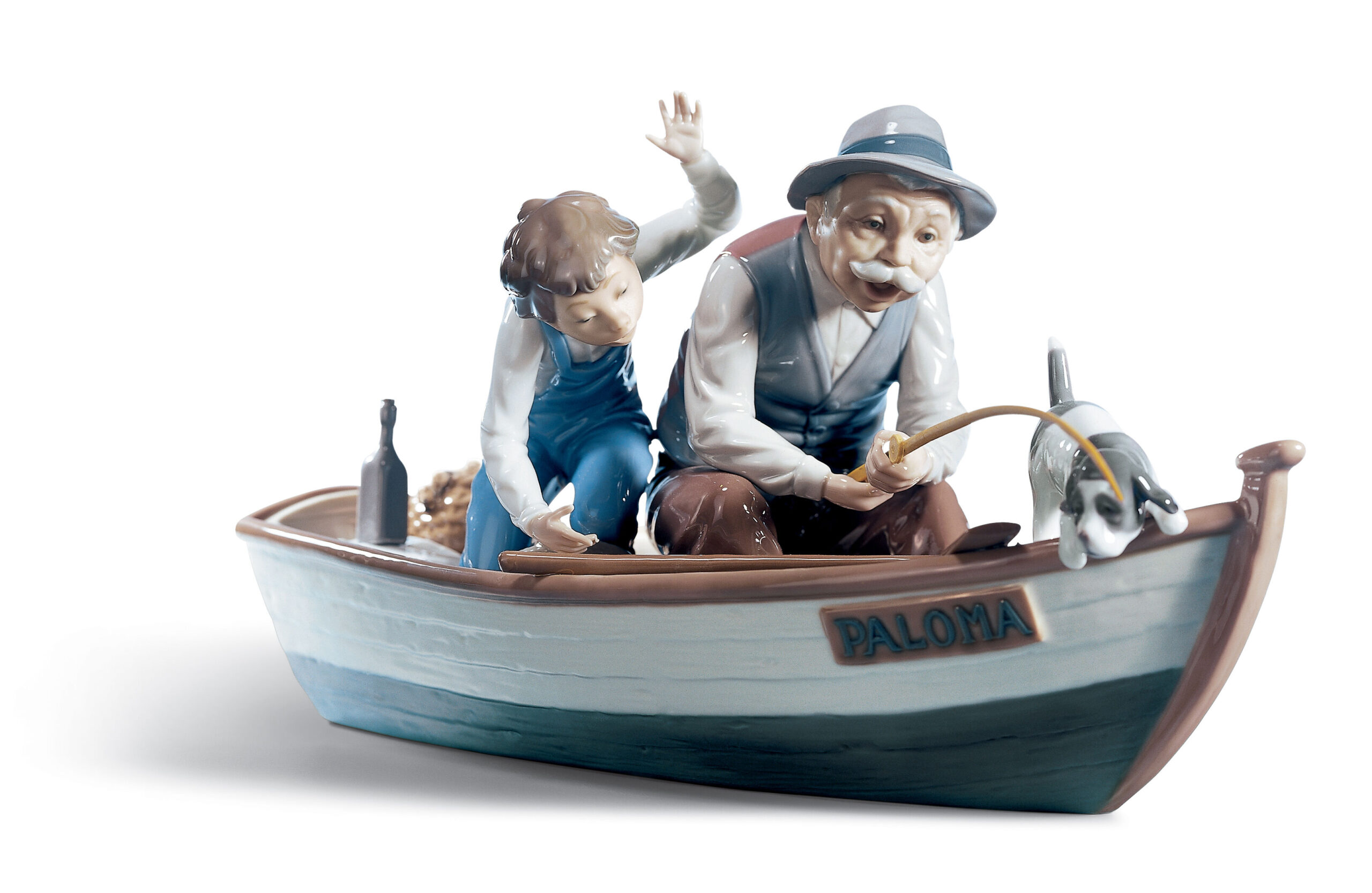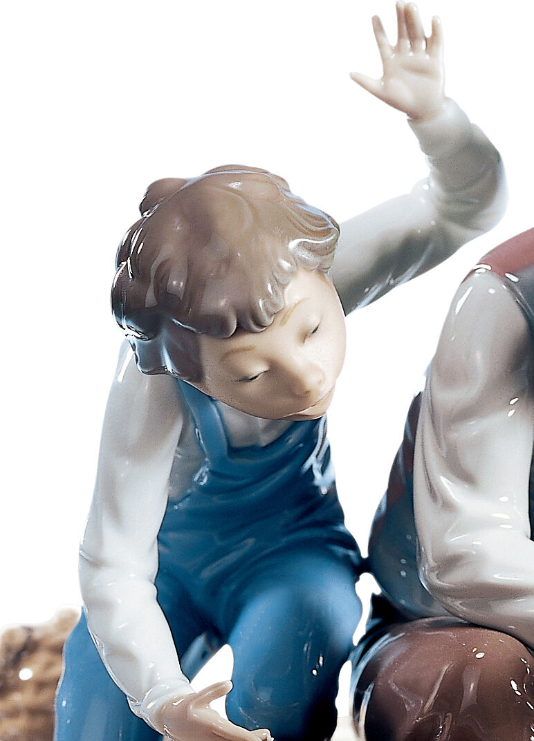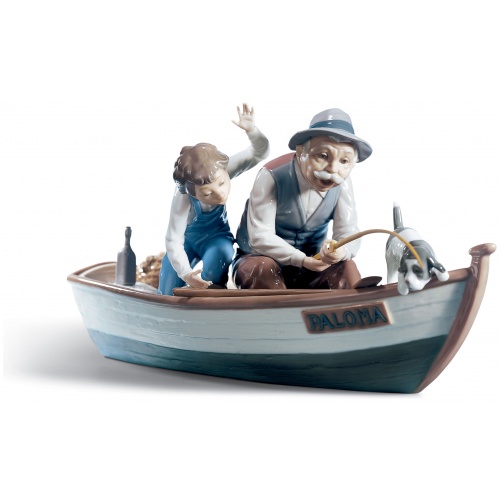 The daily scenes depicted in Lladró figurines show a complex world of stories that are filled with emotions and feelings. Affectionate, tender and deep. Such is the emotional bond between these unique Fishermen in a Boat.