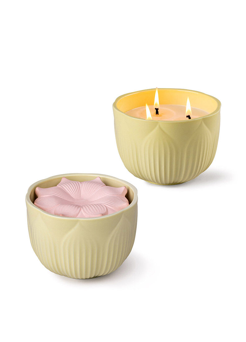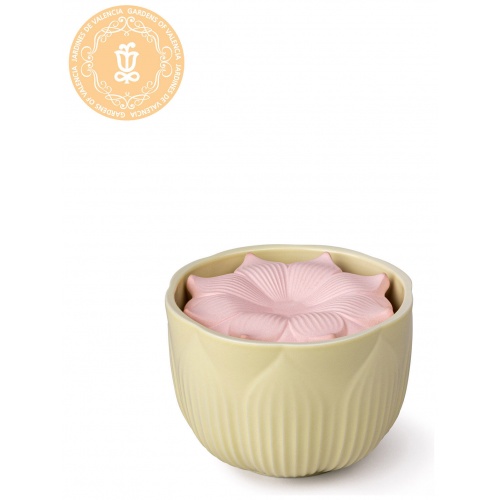 This diffuser comes from the Fleurs collection which recreates the geometric decomposition of a flower with refined, formal brushstrokes. The ornamental work covering each recipient is made up of 8 curved fragments that represent flower petals. Acquired along with essential oils which, by simply pouring a few drops on the base of the diffuser, will expand naturally and fill the air with their scent. This is possible thanks to the natural properties of porcelain.