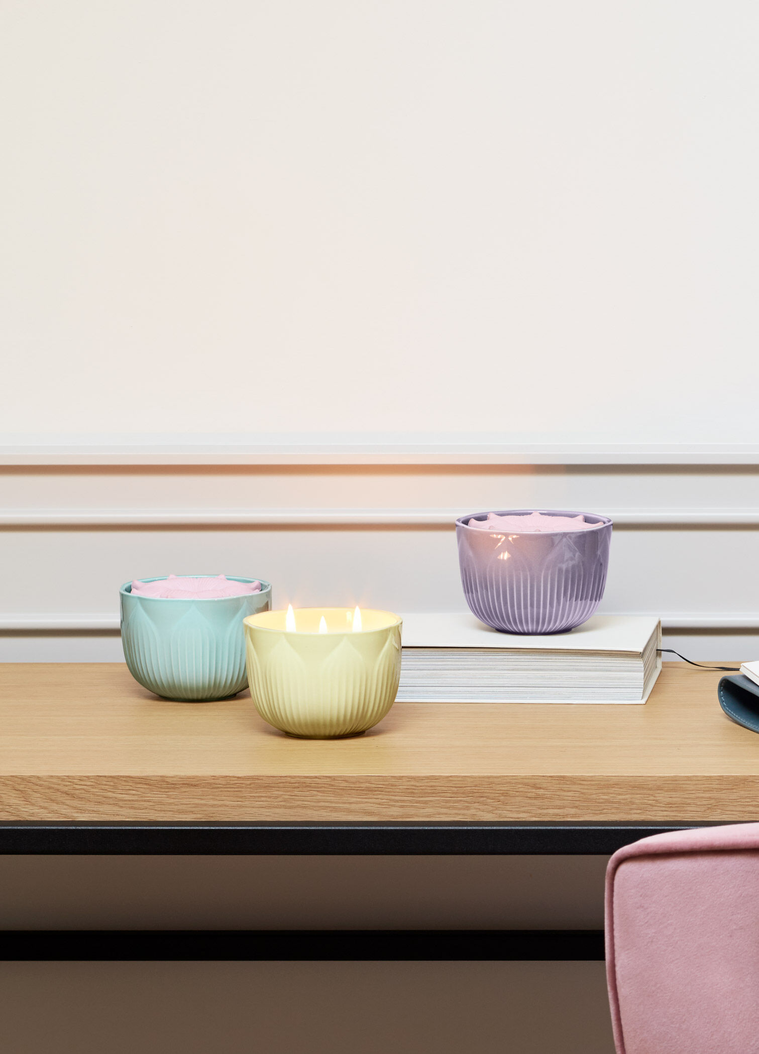 This diffuser comes from the Fleurs collection which recreates the geometric decomposition of a flower with refined, formal brushstrokes. The ornamental work covering each recipient is made up of 8 curved fragments that represent flower petals. Acquired along with essential oils which, by simply pouring a few drops on the base of the diffuser, will expand naturally and fill the air with their scent. This is possible thanks to the natural properties of porcelain.
