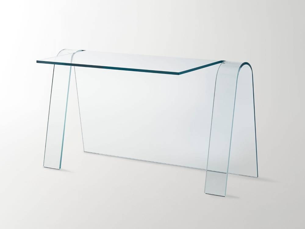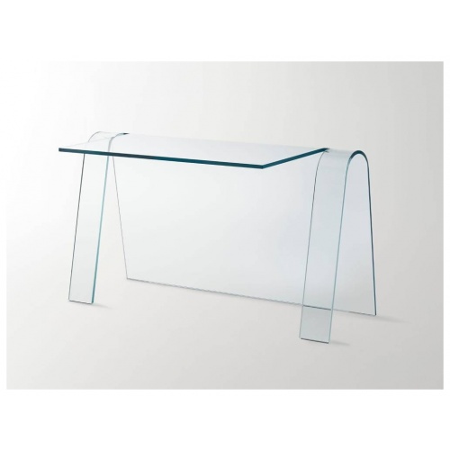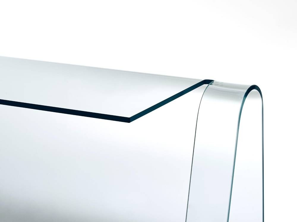 Designed by Yabu Pushelberg, Folio is a simple yet elegant desk crafted with a single sheet of transparent extra light curved glass. Its graceful shape and exquisite attention to detail emphasises the beautiful qualities of its refined materials, creating a contemporary and sophisticated piece for a home office.