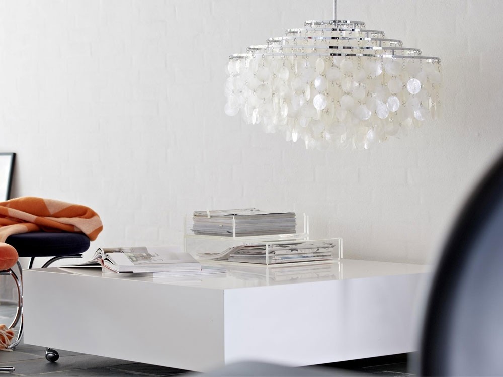 Channel breezy-beach house cool with this striking modern pendant light, crafted using mother of pearl discs.