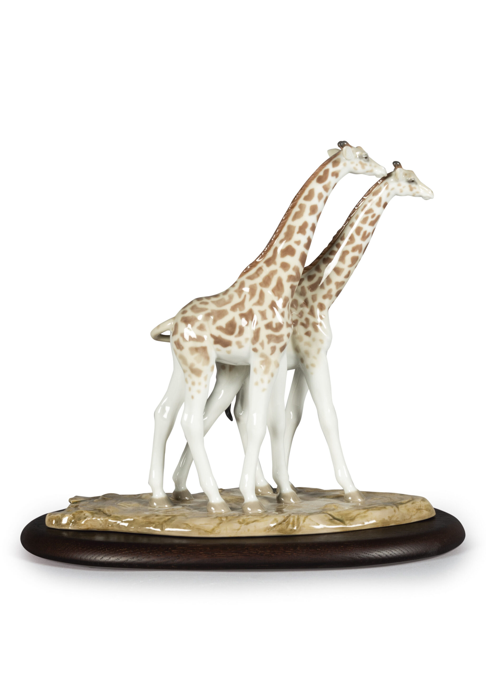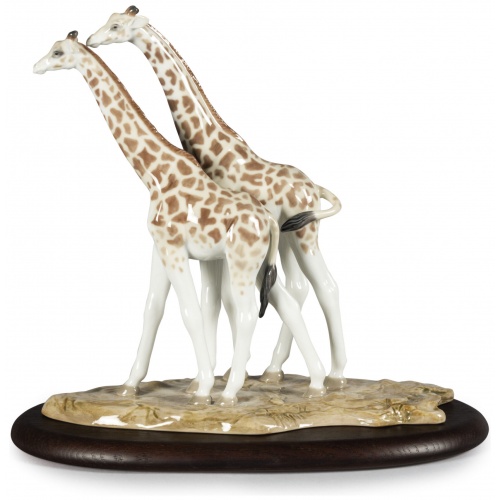 These magnificent giraffes are part of African Savannah, the impressive masterpiece that depicts a group of animals on a journey along an age-old route in search of water. Made in glazed porcelain and decorated in soft pastel tones, they can be acquired separately or with the rest of the animals included in this striking composition. An ideal creation to give as a gift to lovers of animals and nature. Handcrafted in Spain.
