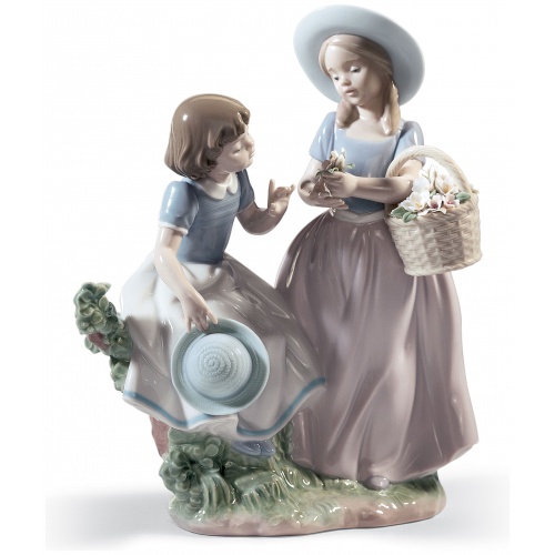 Under the warm spring sun and the gentle breeze of the meadow, between laughter and secrets shared, a friendship blossoms that will last a lifetime. A glossy porcelain piece, finished in pastel colours, ideal as a gift, collectible or decoration.