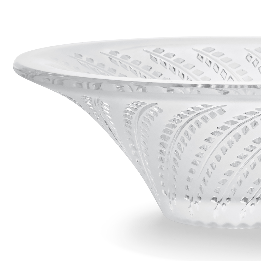 In 1920, René Lalique designed the Glycines perfume bottle, a tribute to this beautiful climbing plant and a symbol of tenderness and mutual friendship. Lalique reinterprets this stunning design through vases and bowls whose hollow pattern immortalizes the ephemeral beauty of flowers.