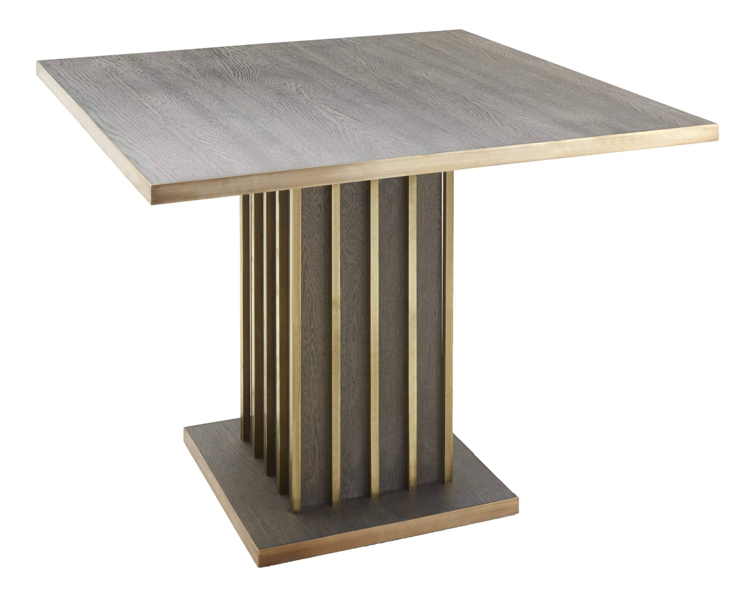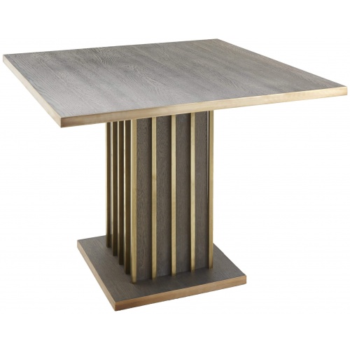 Oak Finish Table with Brass Edge & Brass Tube Detailing