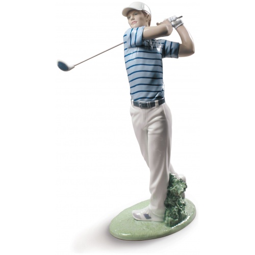 It’s the grand final of the championship and the deciding shot. The crowds hold their breath. The champion holds the club gently yet firmly, takes a deep breath and takes the perfect swing. A glossy porcelain piece decorated in soft pastel colours, ideal as a gift to a lover of golf.
