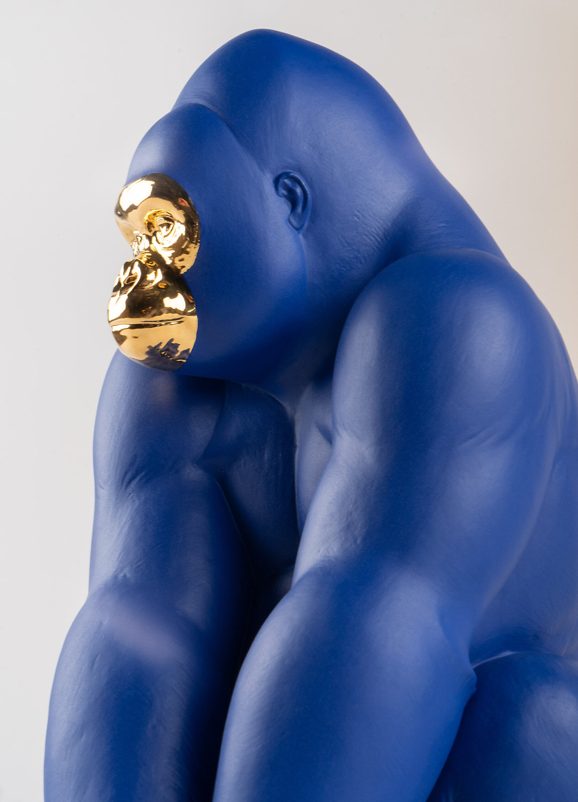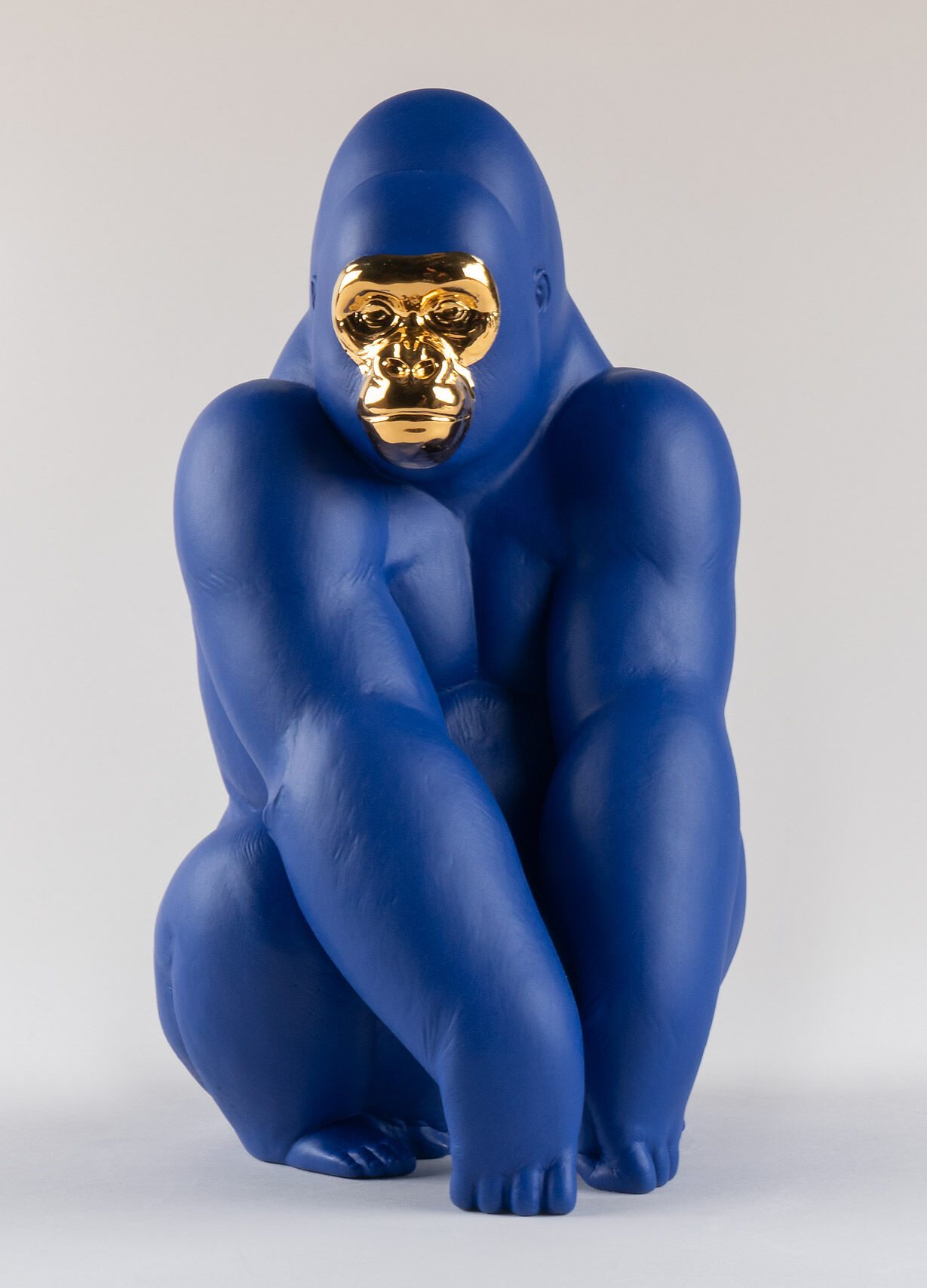 This new piece in the Boldblue collection is made in matte porcelain covered with an intense color inspired by the tone made famous by the artist Yves Klein in the 1950s. The velvety texture of the blue contrasts with the golden luster that covers the face of the striking gorilla. A creation perfect for decorating, for collectors or as a gift. Handcrafted in the Lladró workshops in Spain.