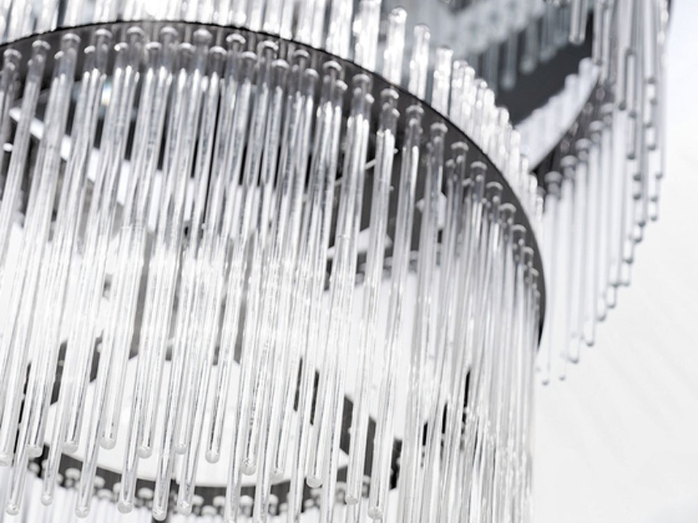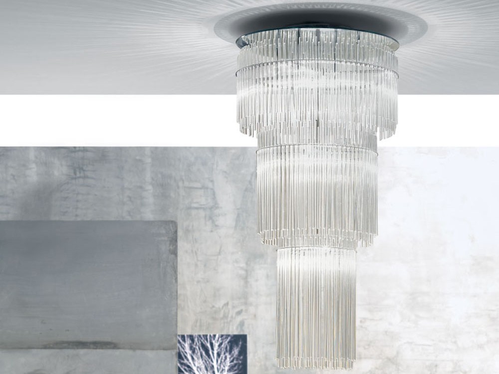The Art Deco inspired Gran Charleston Chandelier with mirrored frame and staggered Murano glass sticks is perfect for making a grand statement.
