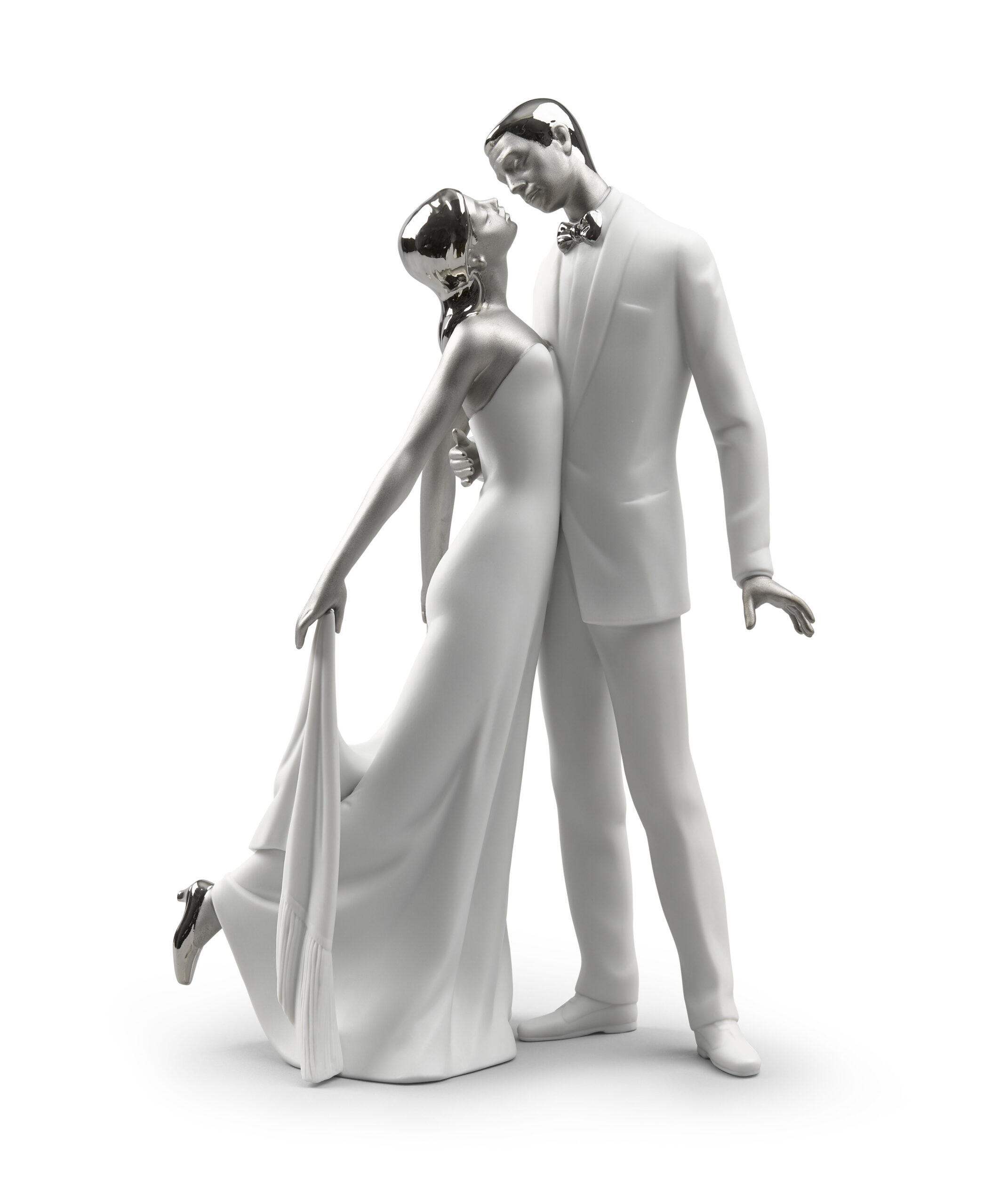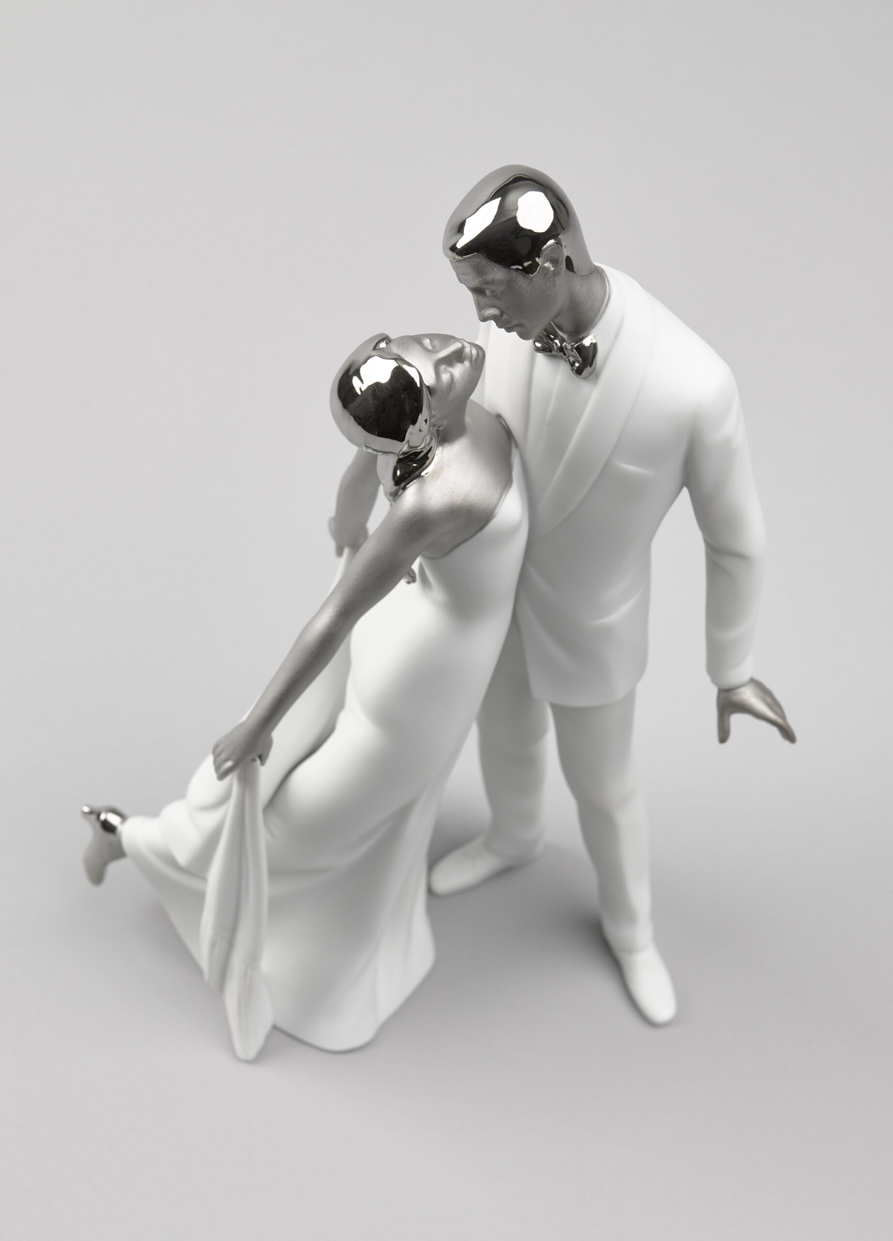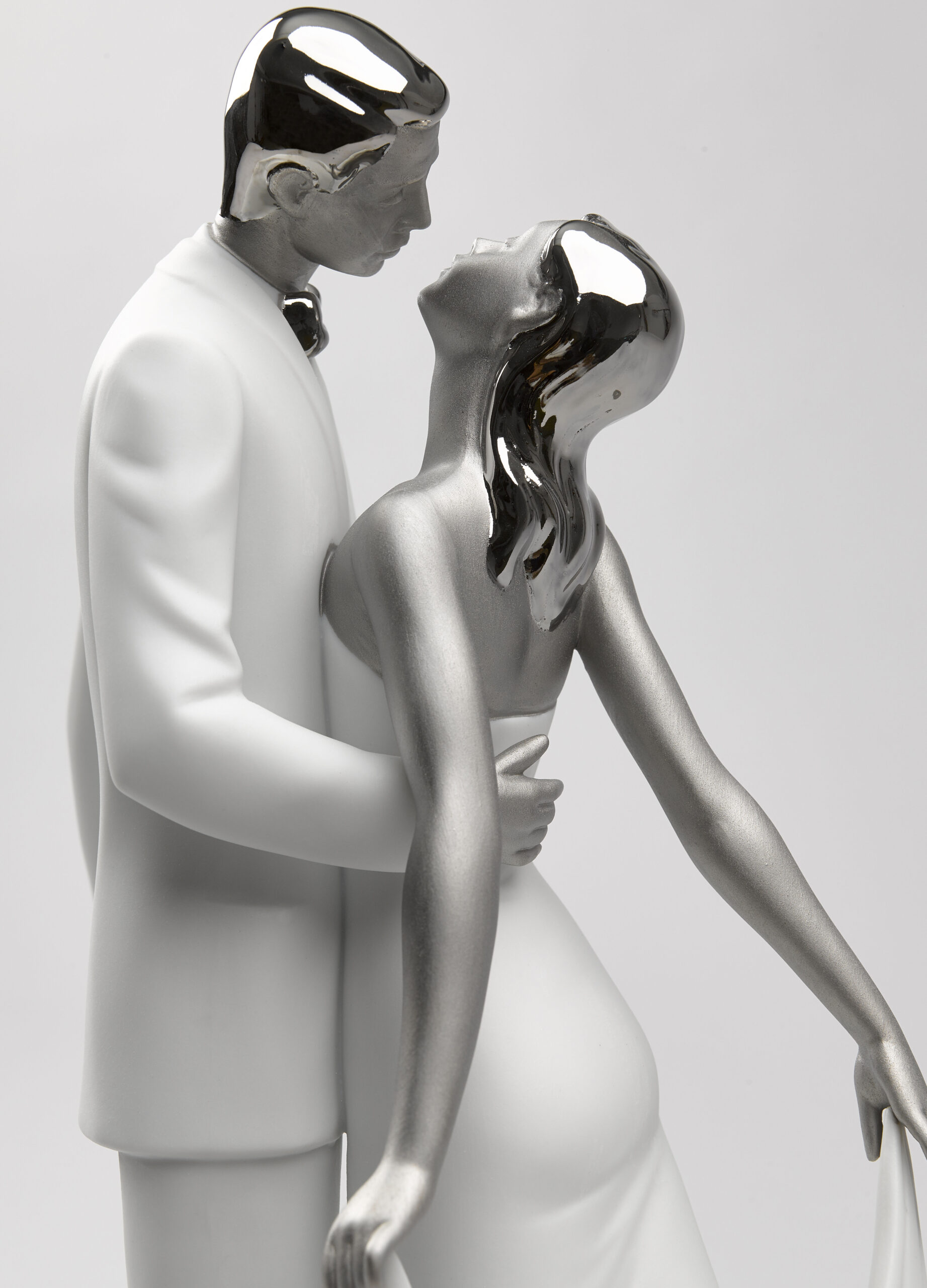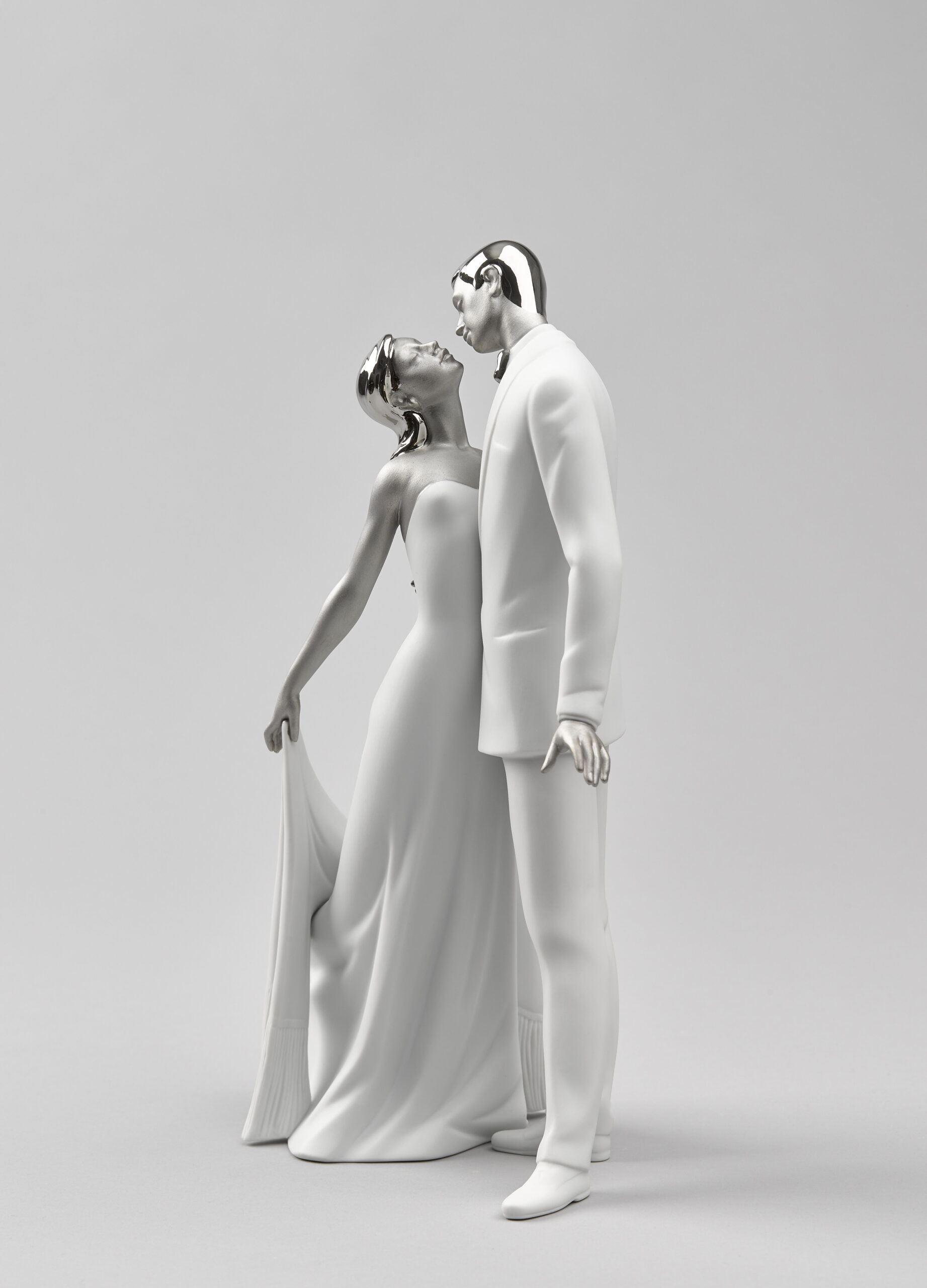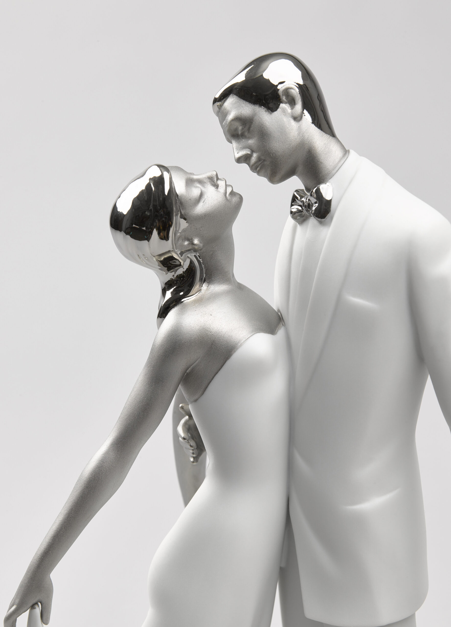 The Re-Deco concept gives a new life to the classic pieces of the LladrĂ³ catalogue through a new and striking decorative approach. This romantic couple is given a much more contemporary style through the contrast between the matte white porcelain finish and the silver lustre that lifts their skin and hair and other details of the piece.