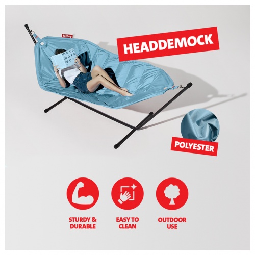 The Fatboy Headdemock is a large luxury hammock for up to two people (or up to 150 kg). Finally, you no longer have to depend on a rope and a tree. The Headdemock is an innovative hammock that tackles outdated defects. Thanks to this Fatboy hammock with a stand, you can hang the way you want to and create your own carefree experience. The large hammock is made of durable polyester, and the frame is made of metal and rubber. Thanks to the water and dirt repellent and UV-resistant fabric, you’ll enjoy this masterpiece for years to come. The Headdemock is a foldable hammock that comes with a matching carrying bag. This makes it even more convenient, as you can easily store the Headdemock at the end of the summer.Item100425EAN8718164875328