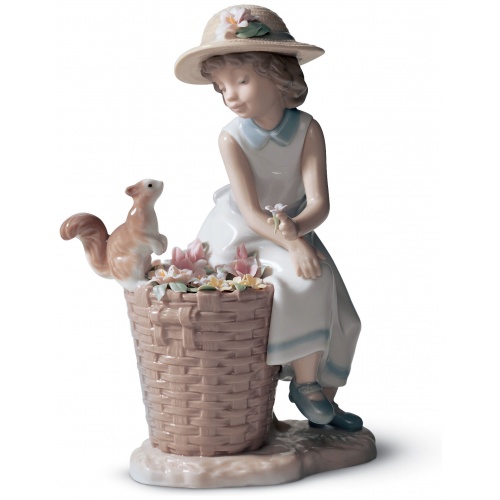 Delicious, fresh and full of spring. One of the charming LladrĂ³ girls, always surrounded by beautiful and delicate flowers, this time accompanied by a squirrel who appears inquisitively in the scene. A glossy porcelain piece, decorated in pastel colours, ideal as a gift, collectible or decoration.