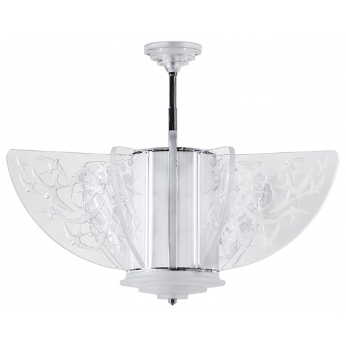 Directly inspired by a creation of René Lalique’s, this chandelier depicts the beauty of swallows taking flight. With grace and lightness, they spread their wings with finely chiselled feathers.