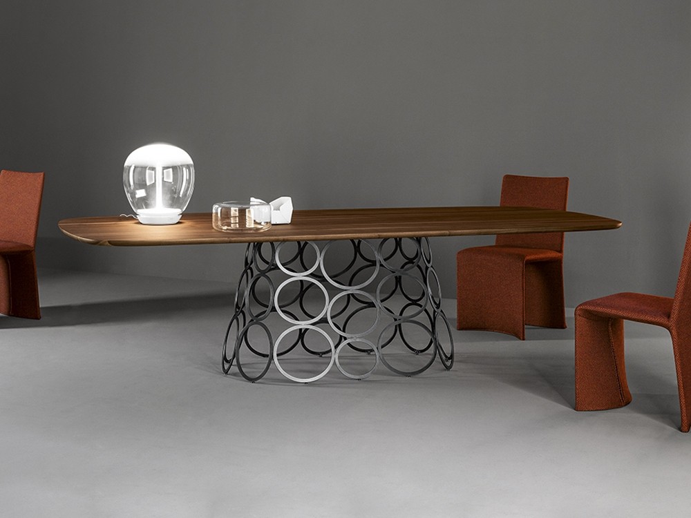 Named after a fun game, Hulahoop is the new family of tables designed by Alessandro Busana for Bonaldo.
