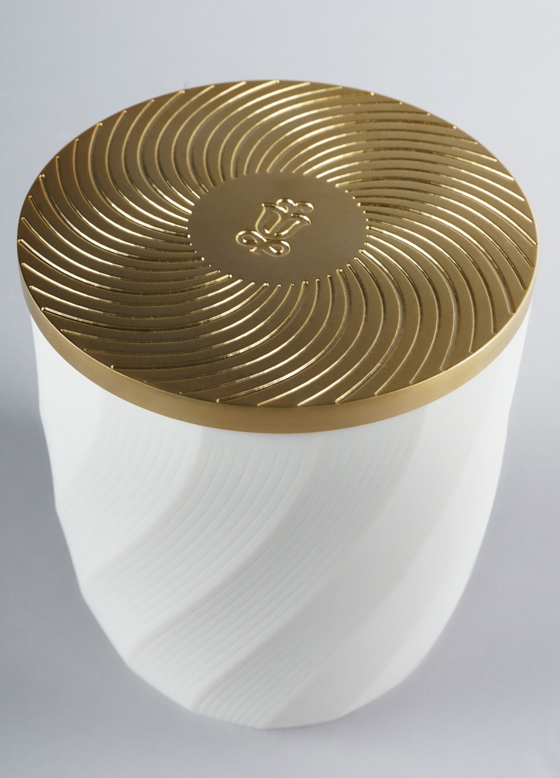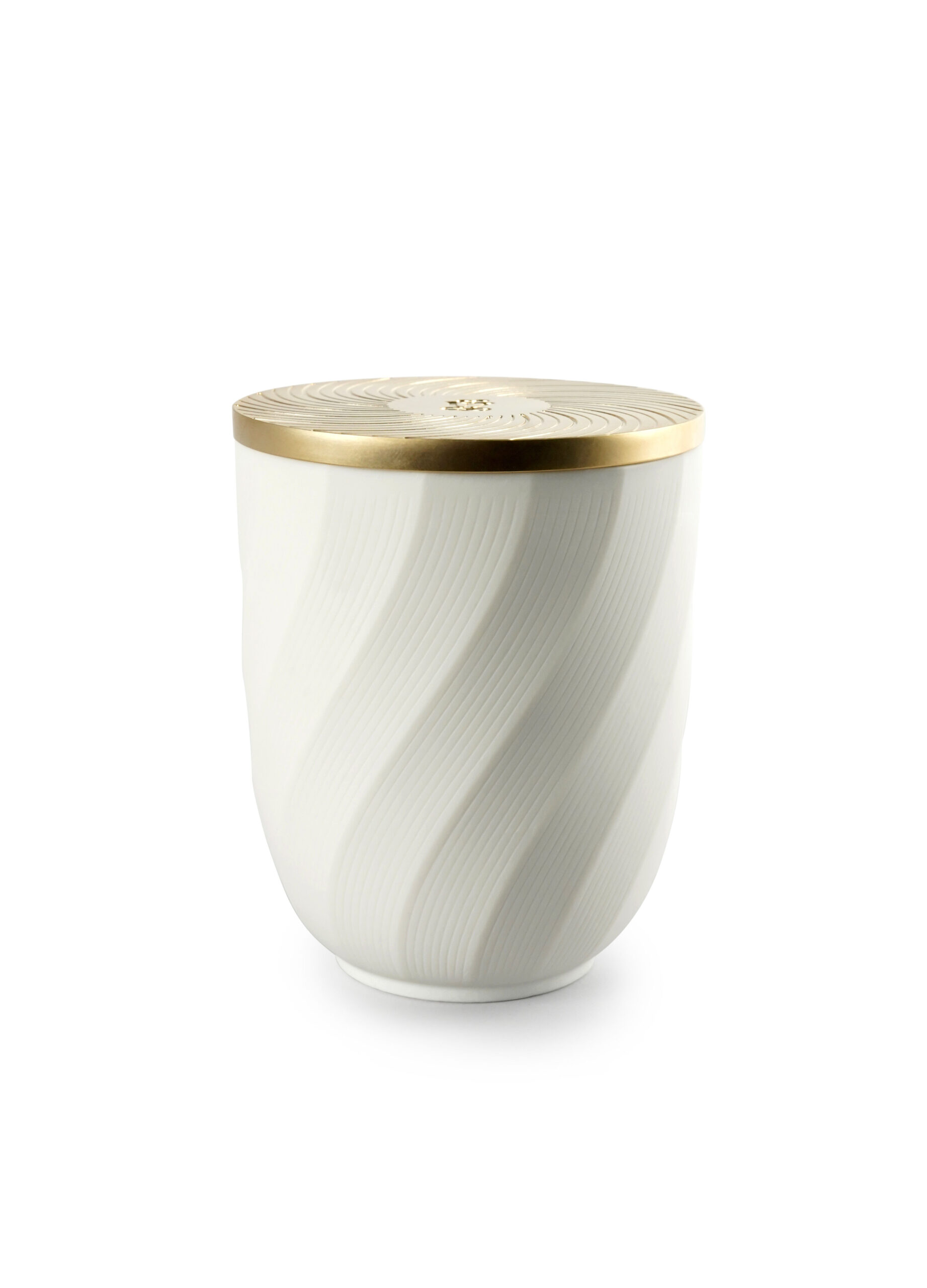 Made in white matte porcelain and decorated with a metal cover. It contains 480 gr of natural wax scented with “Vanilla Scent”, a fragrance with sweet notes of vanilla and patchouli. The piece combines functionality and great decorative beauty. Ideal as a gift or for collectors. Handcrafted in Spain.