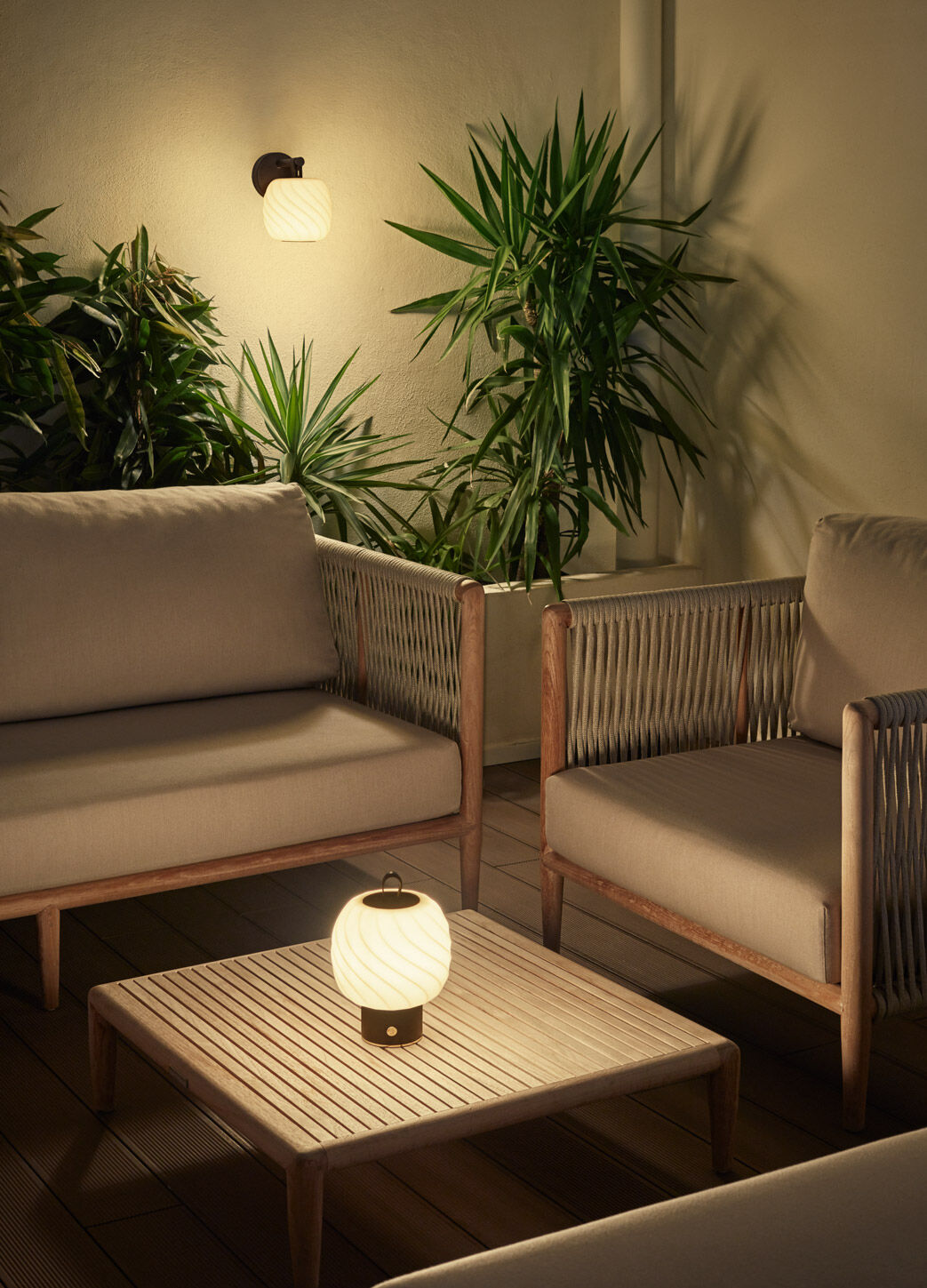 The Ice Cream collection is expanded with this version for hanging on the wall. The lamps in these series, inspired by the wavy curves of ice cream and by traditional Japanese paper lanterns, play with porcelain’s translucent quality to give off a particularly warm light.