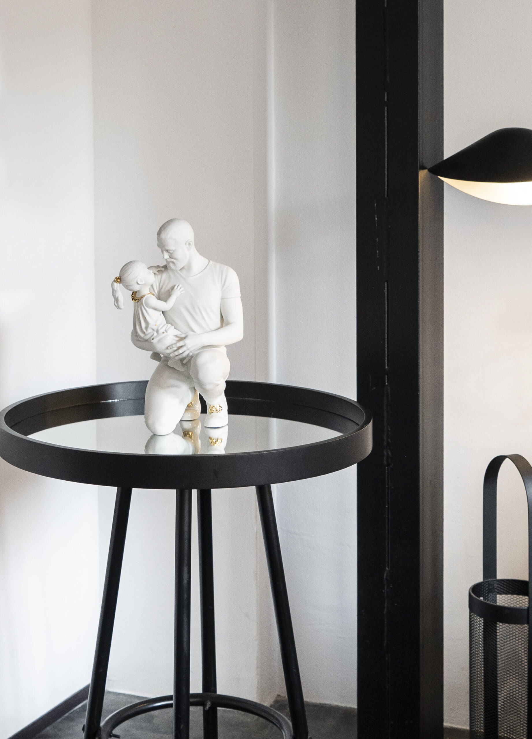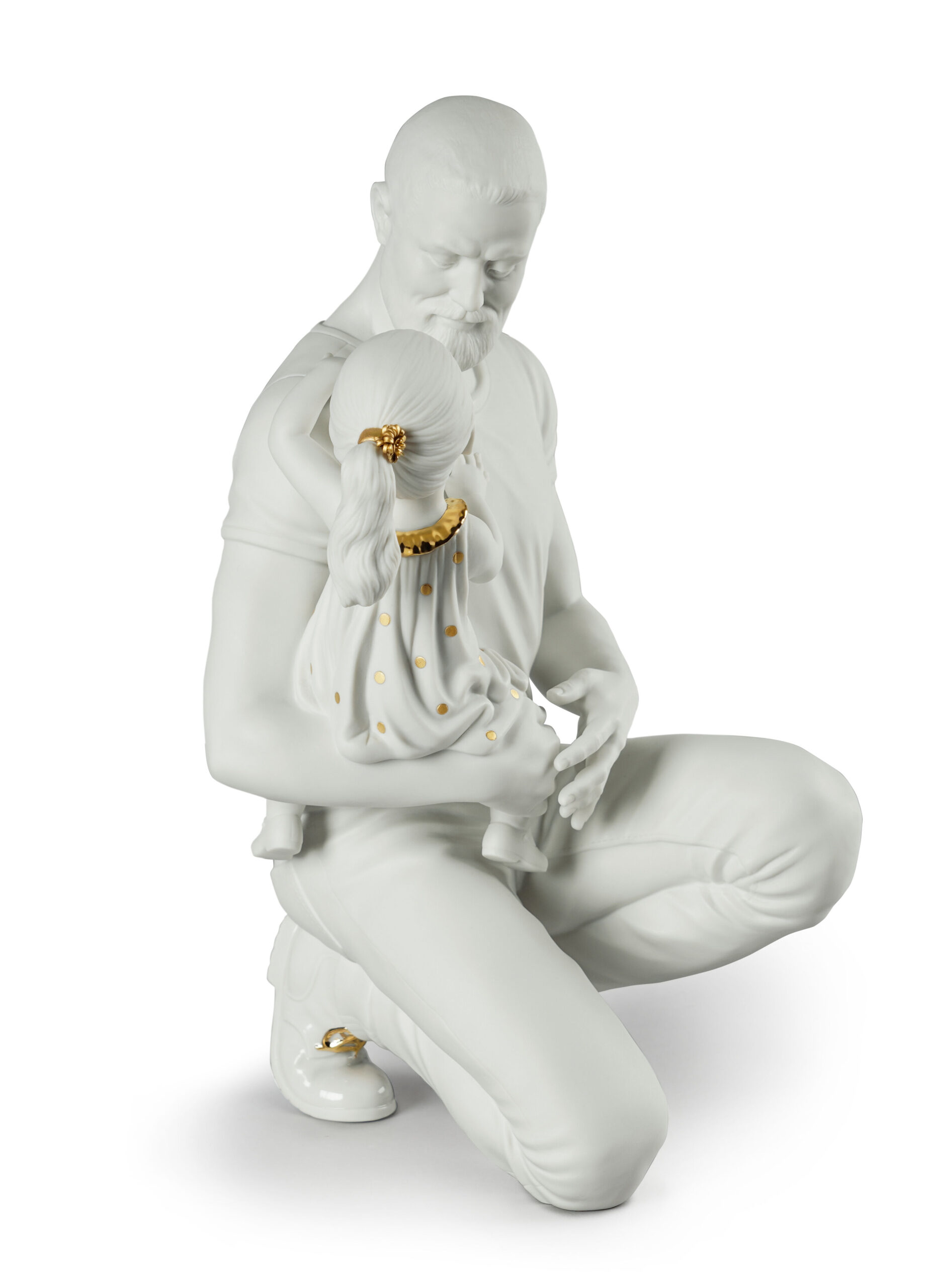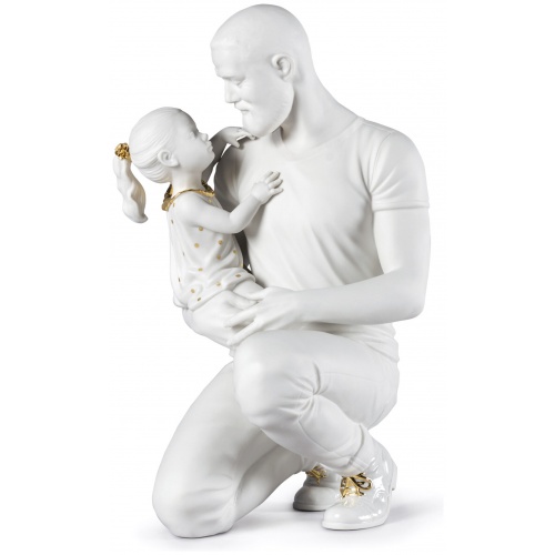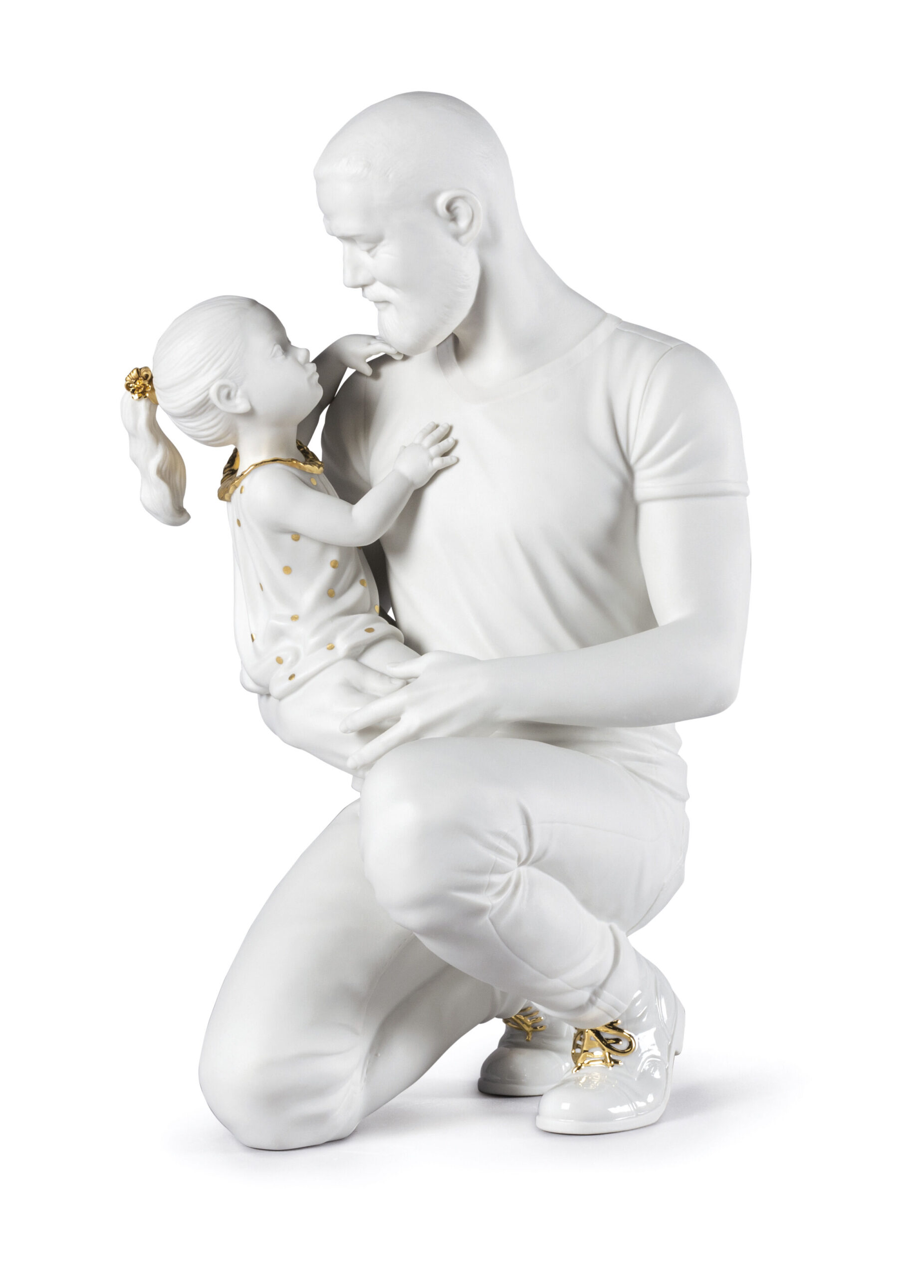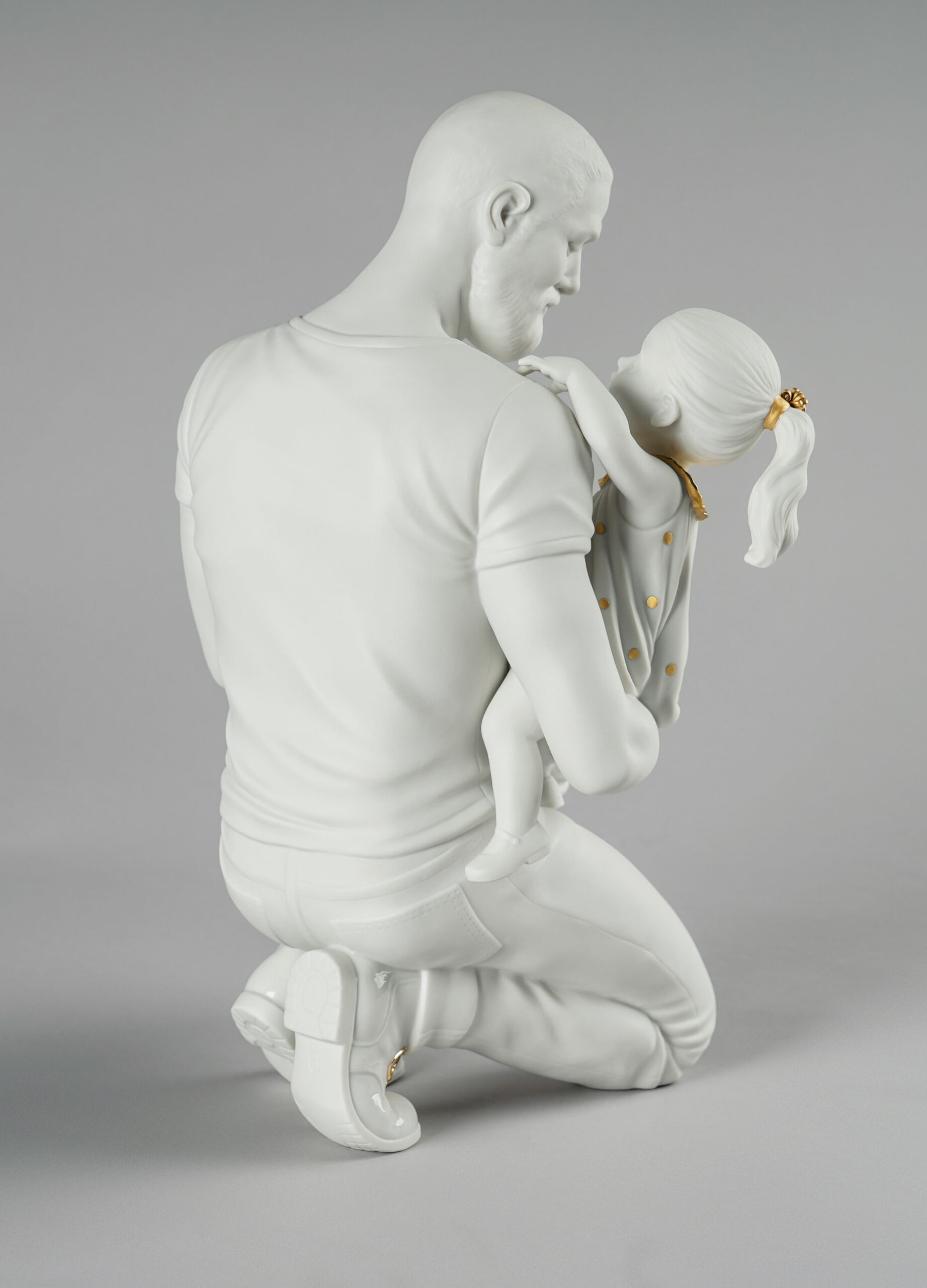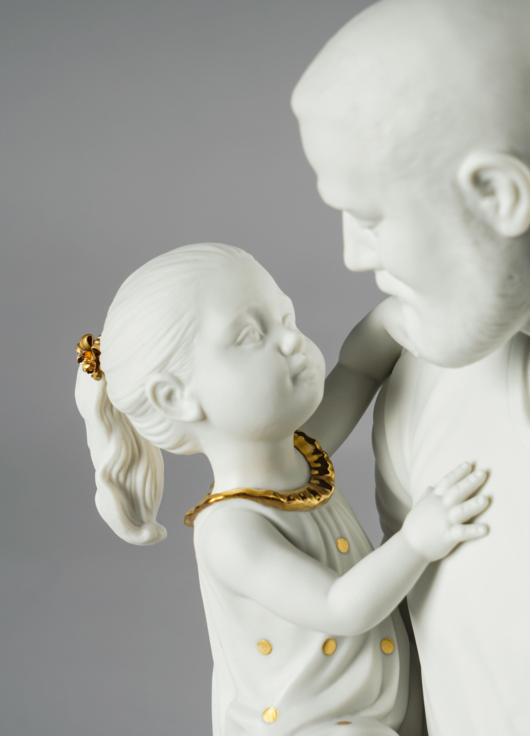 The family is a constant source of inspiration for LladrĂ³ artists and this is the first time that it has been depicted through a father and daughter. A white matte and glazed porcelain piece decorated solely with touches of golden luster. Perfect for a gift for a father. Handcrafted in Spain.