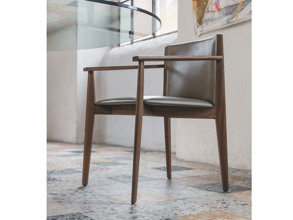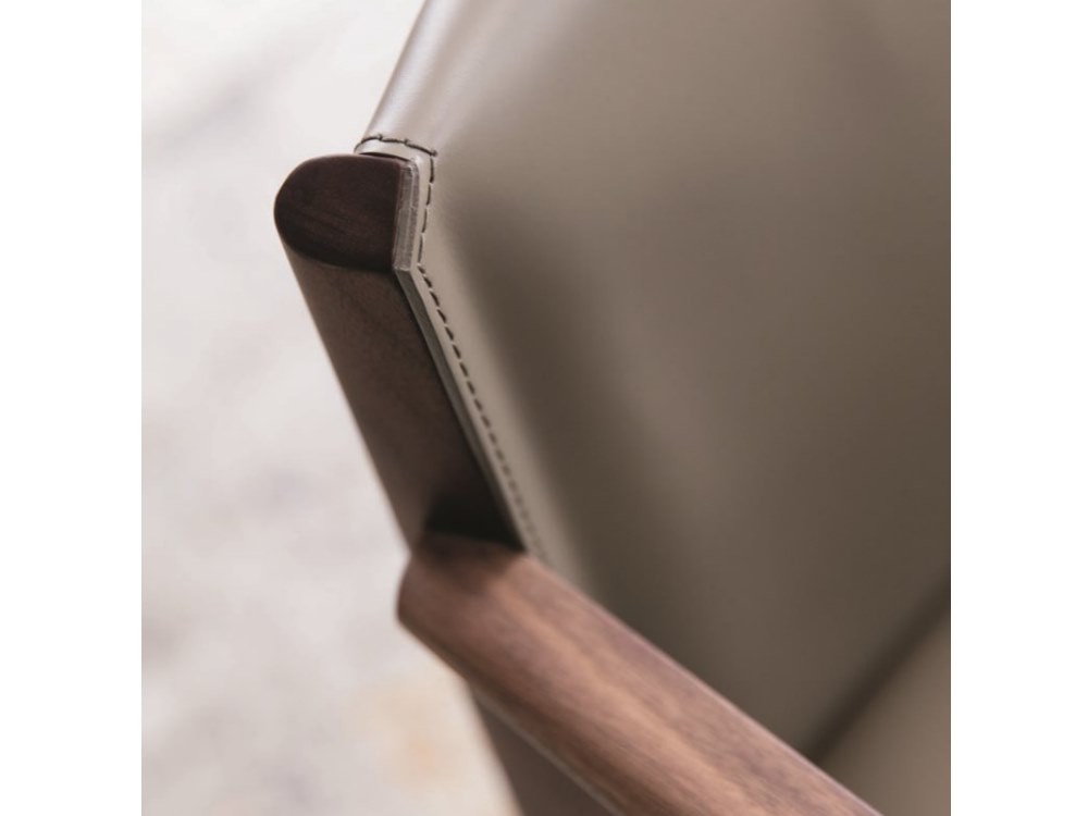 With a frame crafted in solid Canaletta walnut, and the seat and supported back being covered in the highest quality cuoietto leather, the Ionis Dining Chair exudes luxury and class