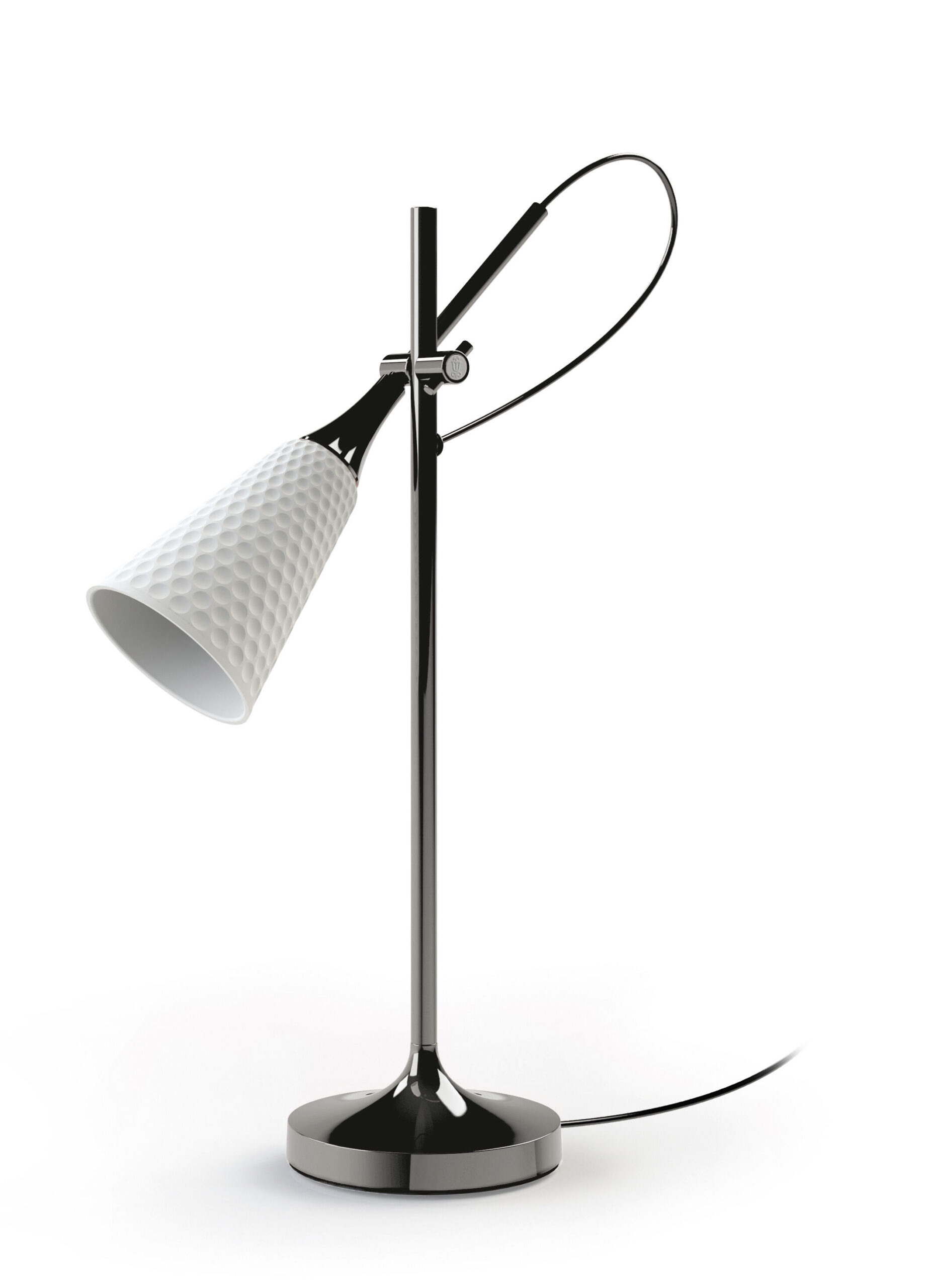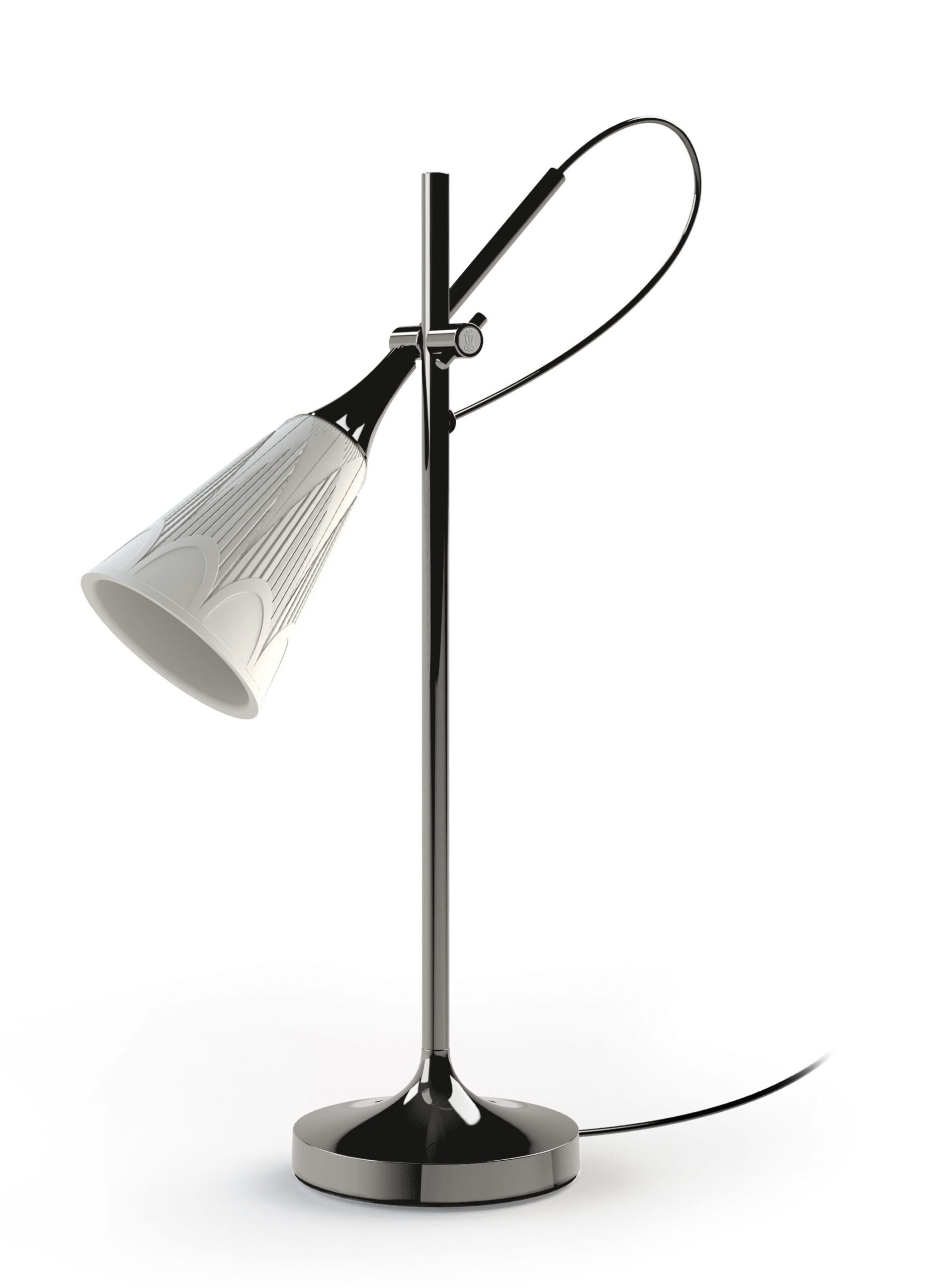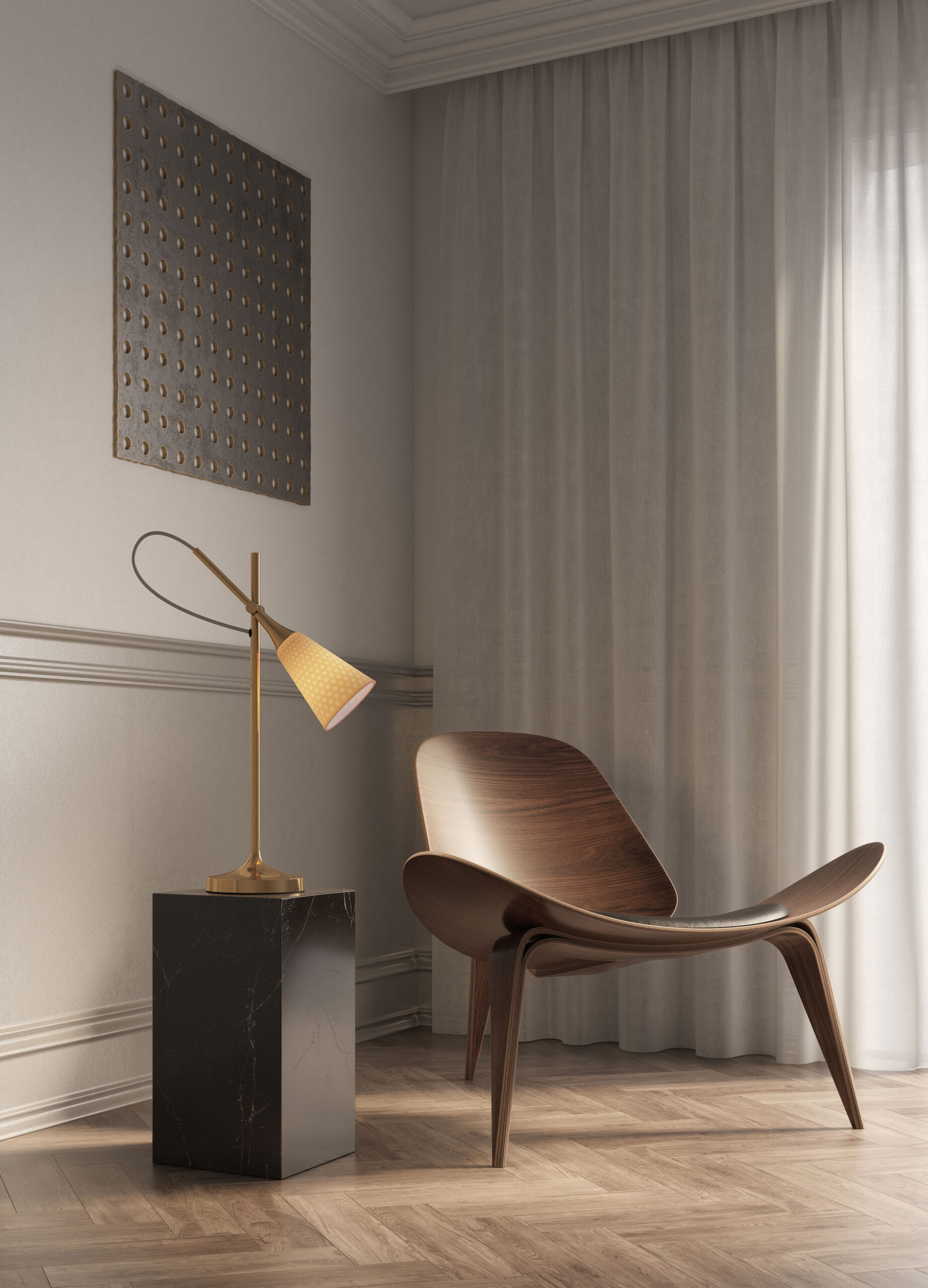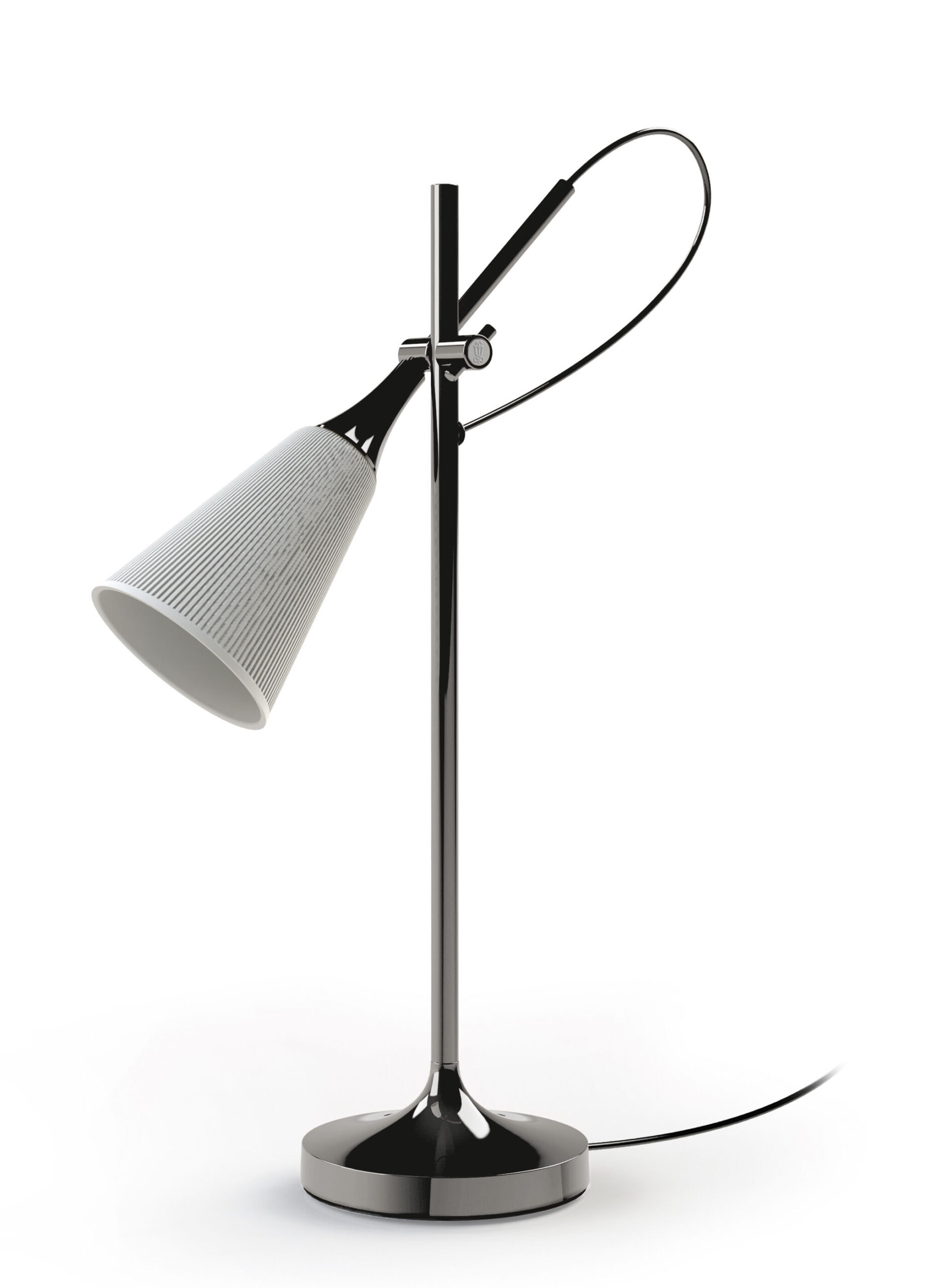 The Jamz collection has all the flavour of an era: the sound of jazz clubs, the forms inspired by art deco and the aroma of creativity, rhythm and vitality that characterized a few years of great personality. A unique selection of hanging, standing and reading lamps. The combination of brass and porcelain lithophanes, with a choice of three different models, recalls the shape of the jazz instruments. The customization of the lamps symbolizes the free essence of this music, allowing improvisation for custom creations. Refined shape lamps in white porcelain with gold, copper or black metals in which light and craftsmanship come together to create different atmospheres.