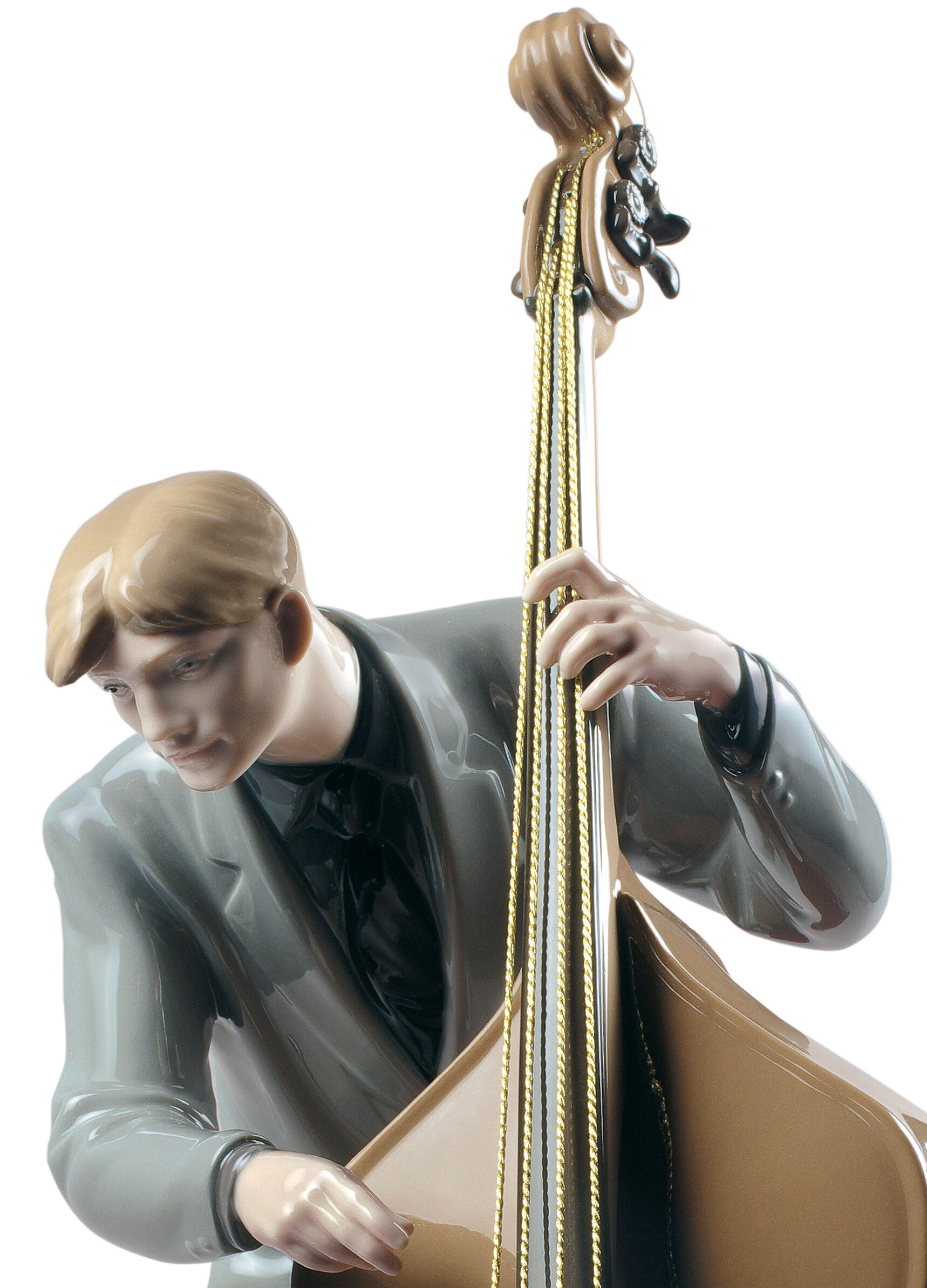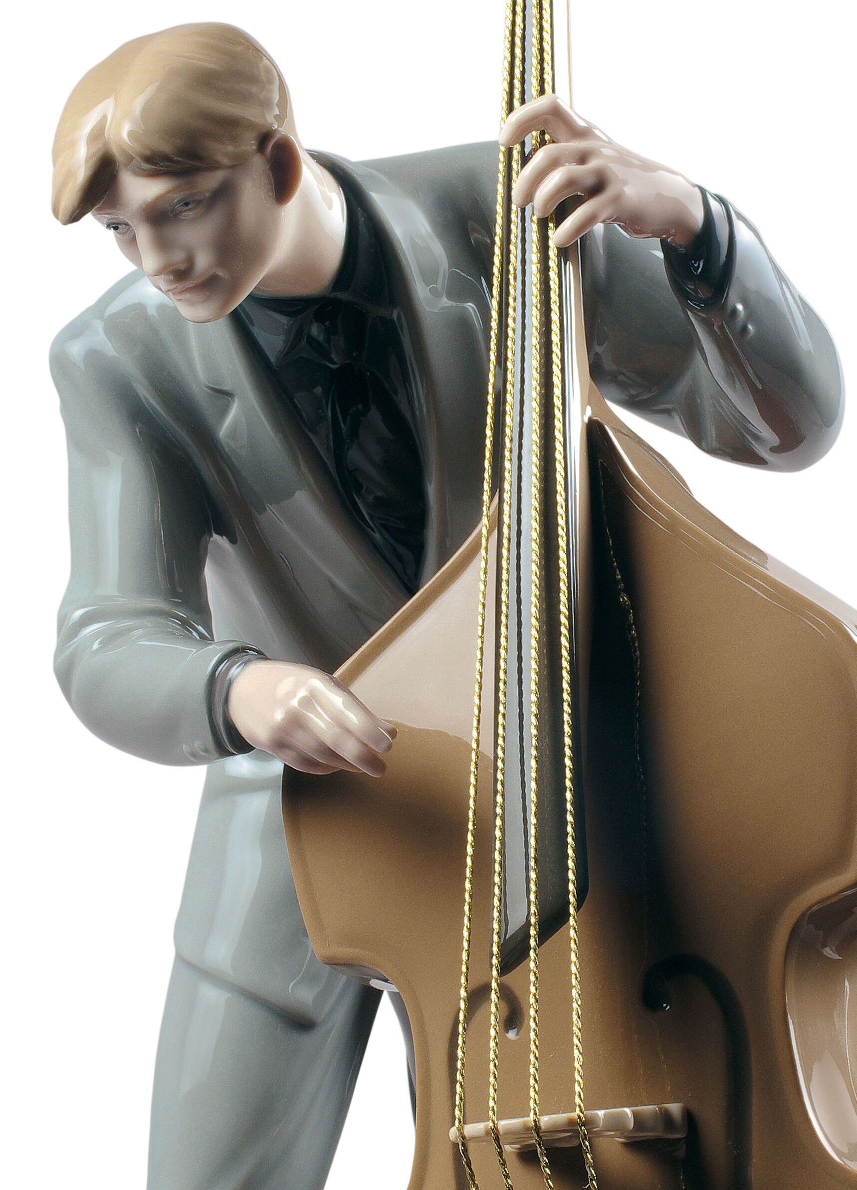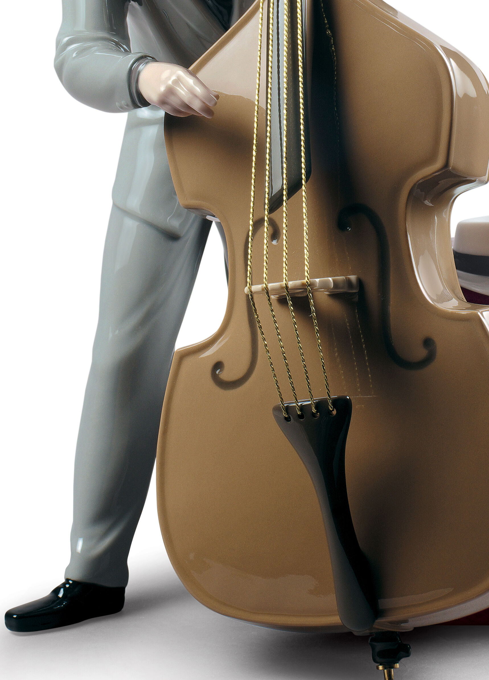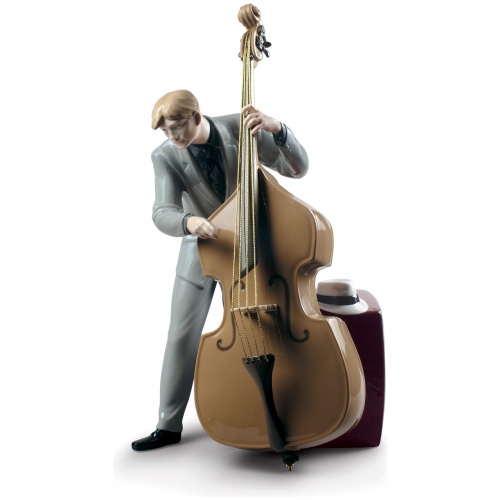Jazz Bassist is an original piece, both for its theme and its decoration. This bassist is a member of a jazz band, stylishly dressed for the performance.