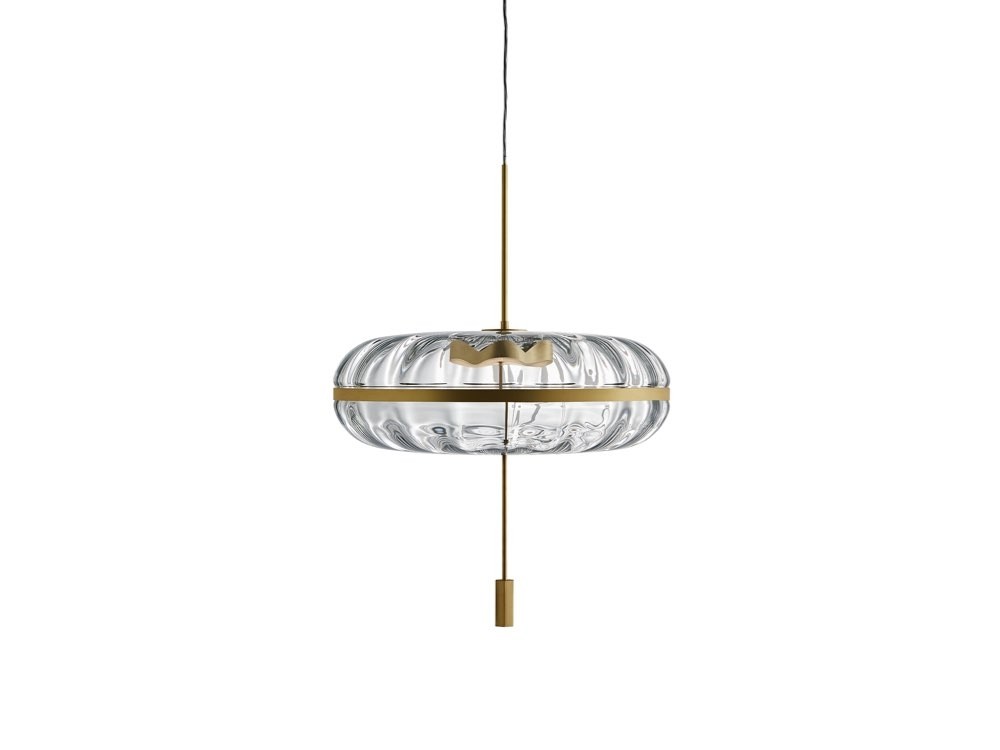 Jolie is a spellbindingly beautiful modern pendant light. It is crafted from two hand-blown Murano glass domes which are joined together with satin brass metal details. Ethereal and lovely, it looks stunning in every room of the house.