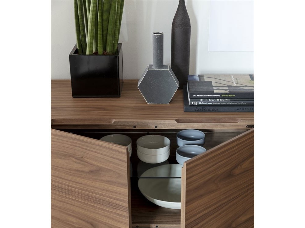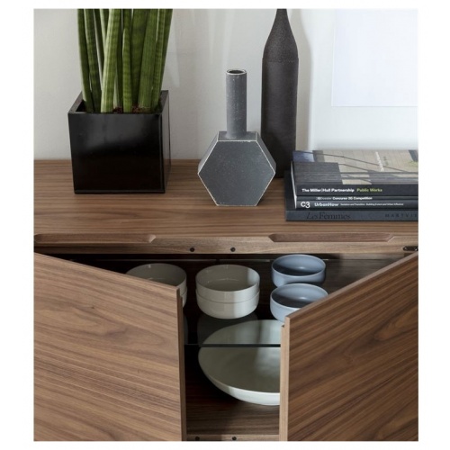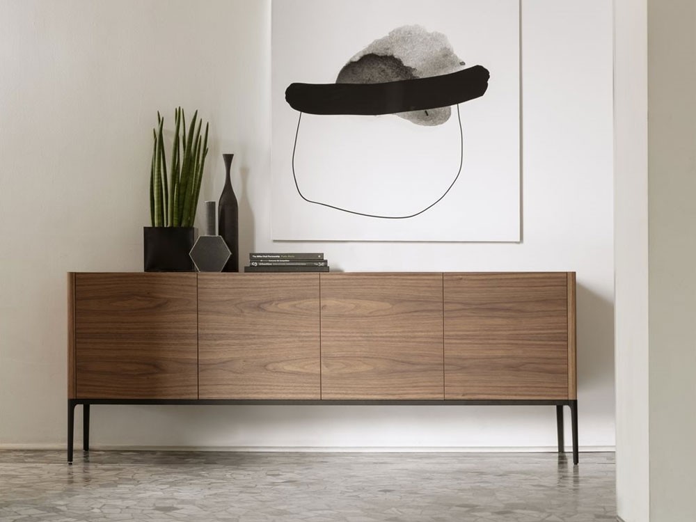 Featuring a canaletta walnut frame with matt black metal base, obtained using Porada’s designed die casting, the Kanto sideboard is a classic and refined design ideal as a stylish storage unit for any contemporary setting.