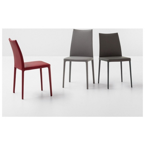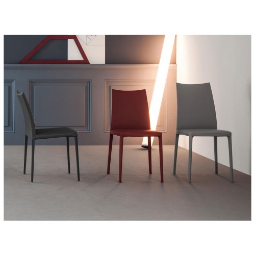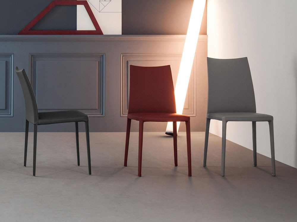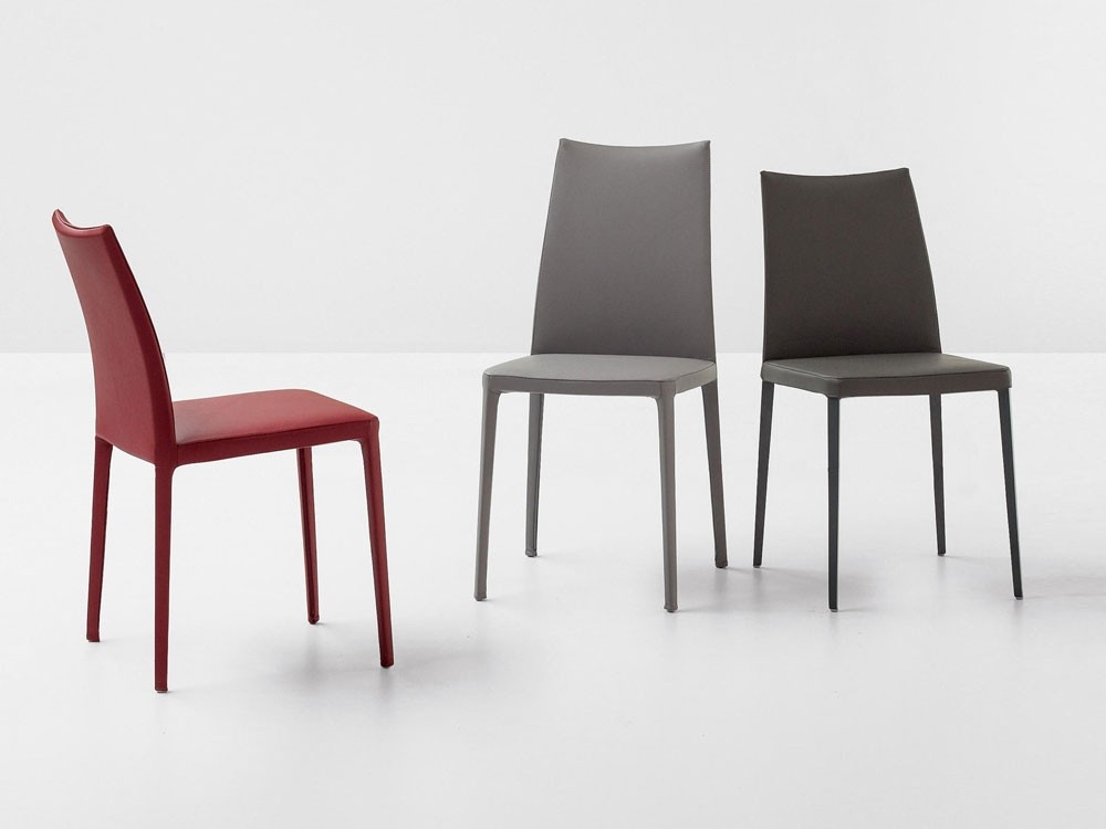 Kayla is a sophisticated leather upholstered dining chair available with a low or high backrest.