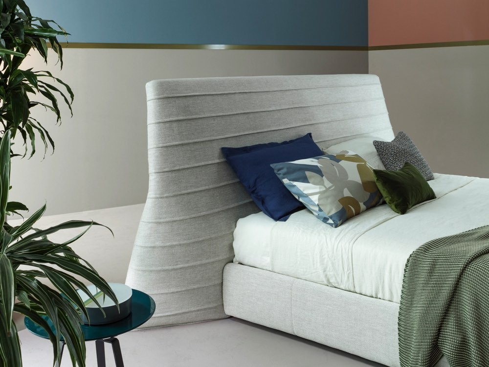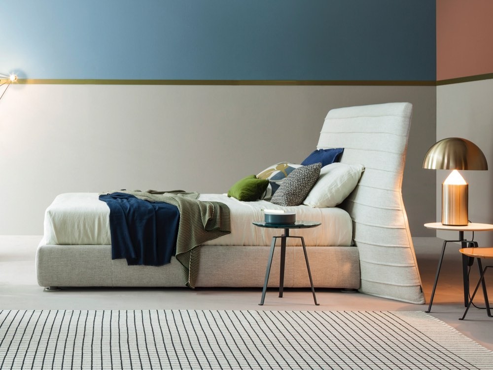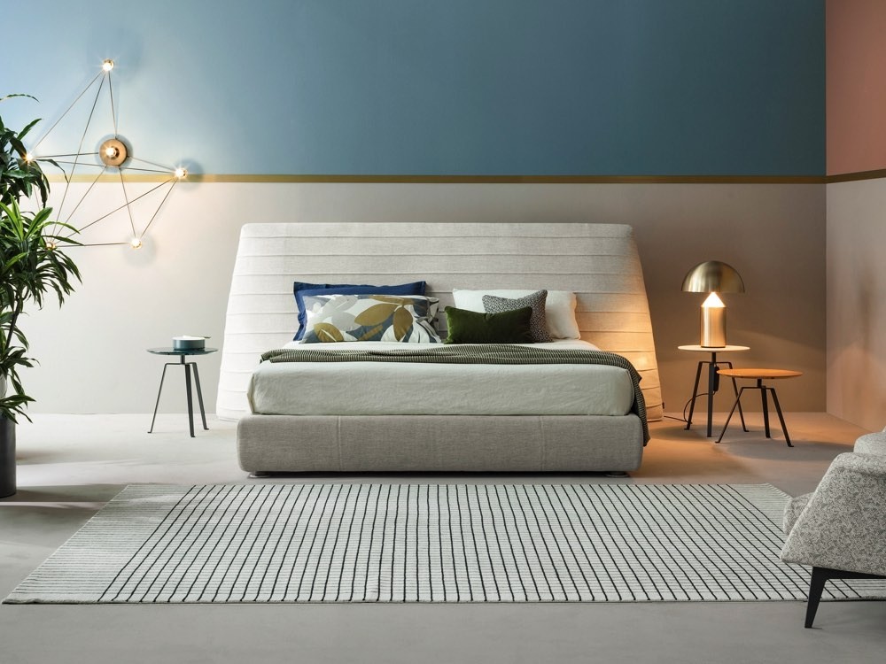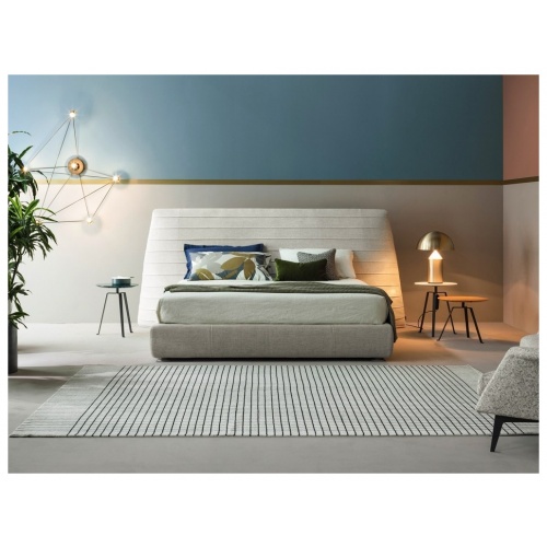 Kenobi is a glamorous double bed created by contemporary Italian brand, Bonaldo. Its statement headboard is upholstered with sartorial stitching, lending a rhythmic flowing effect to its generous surface.