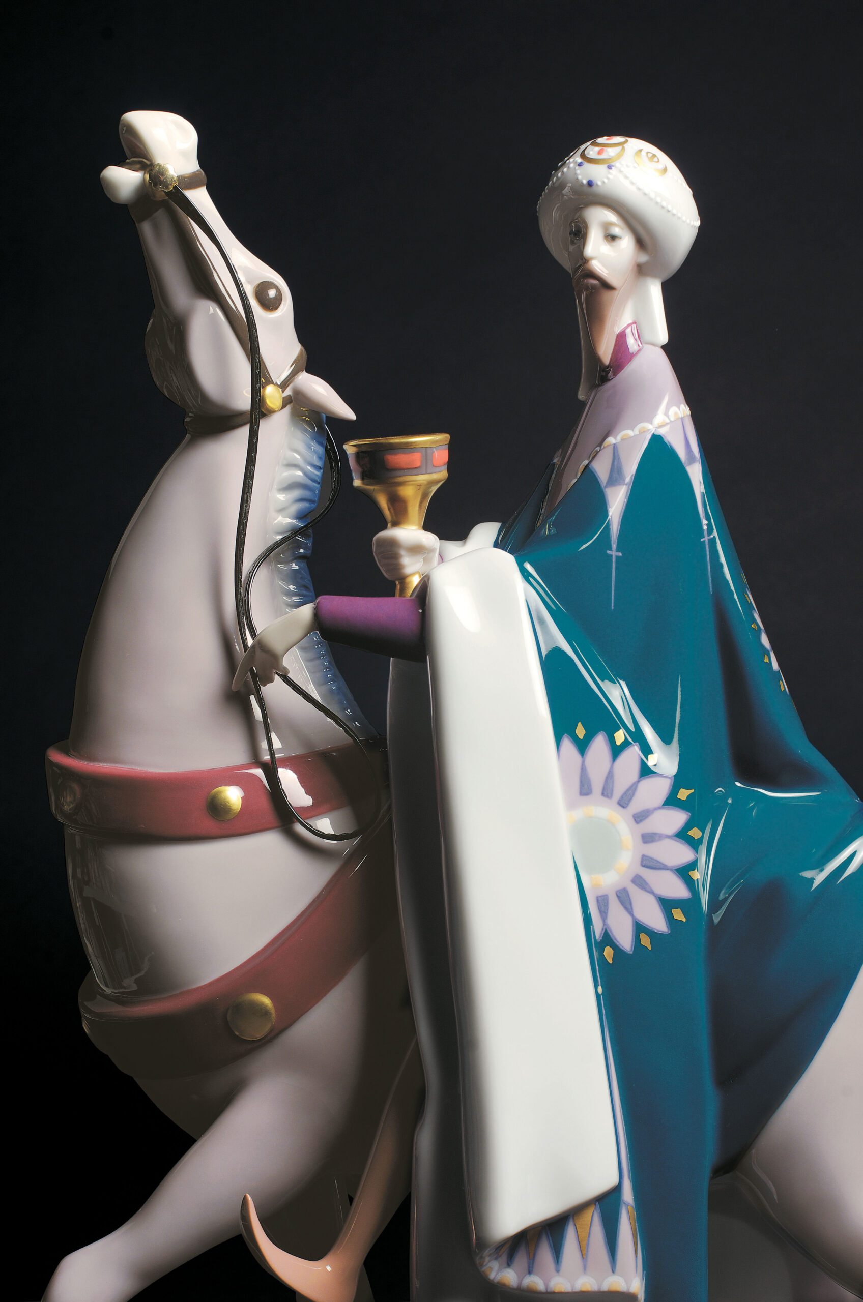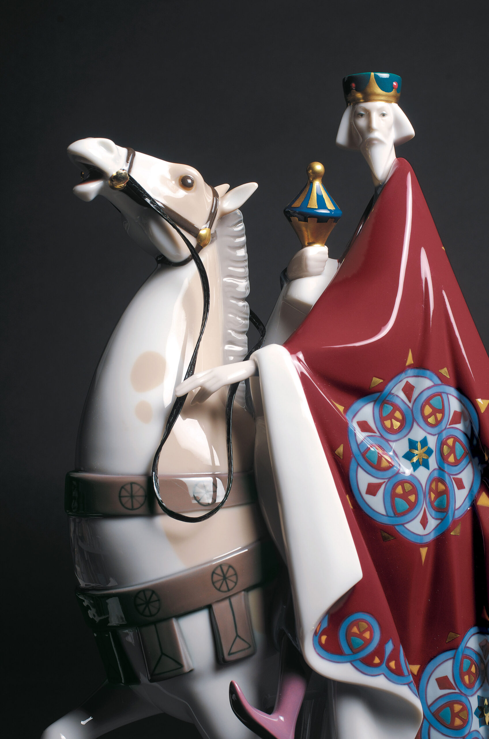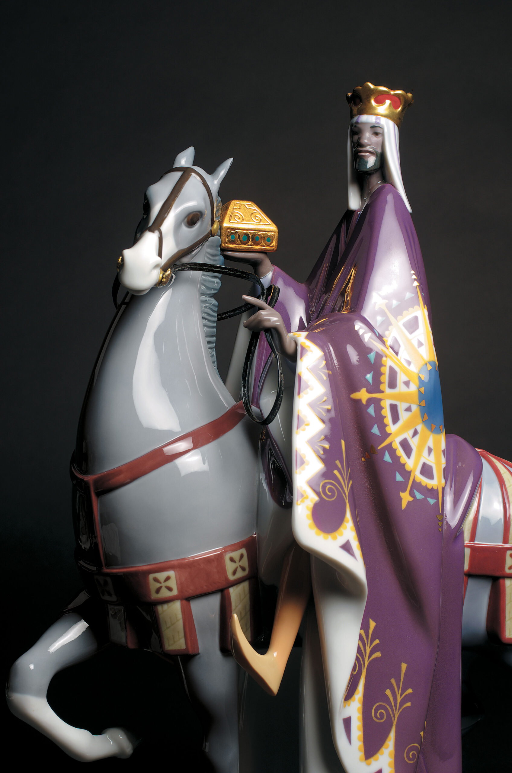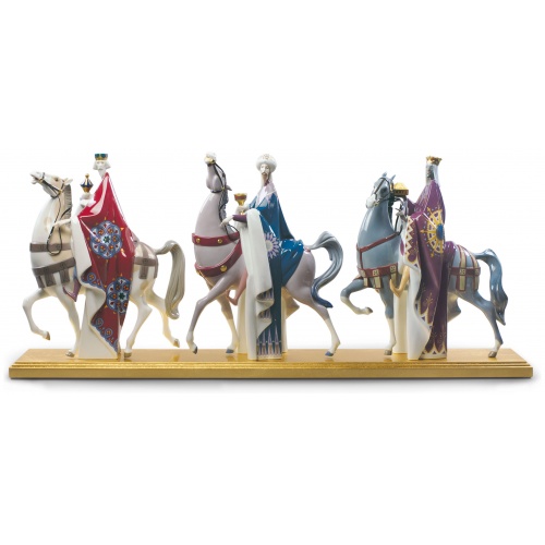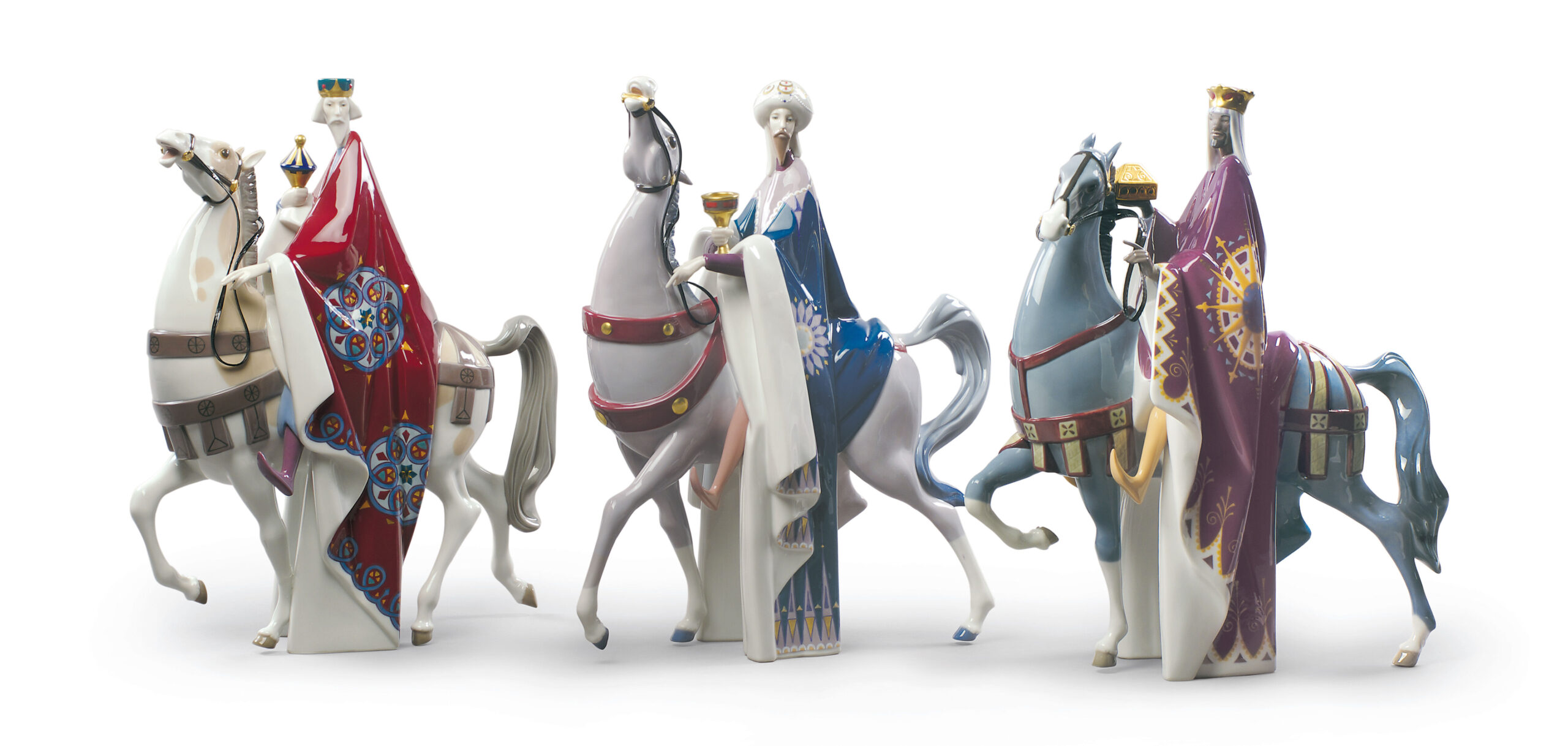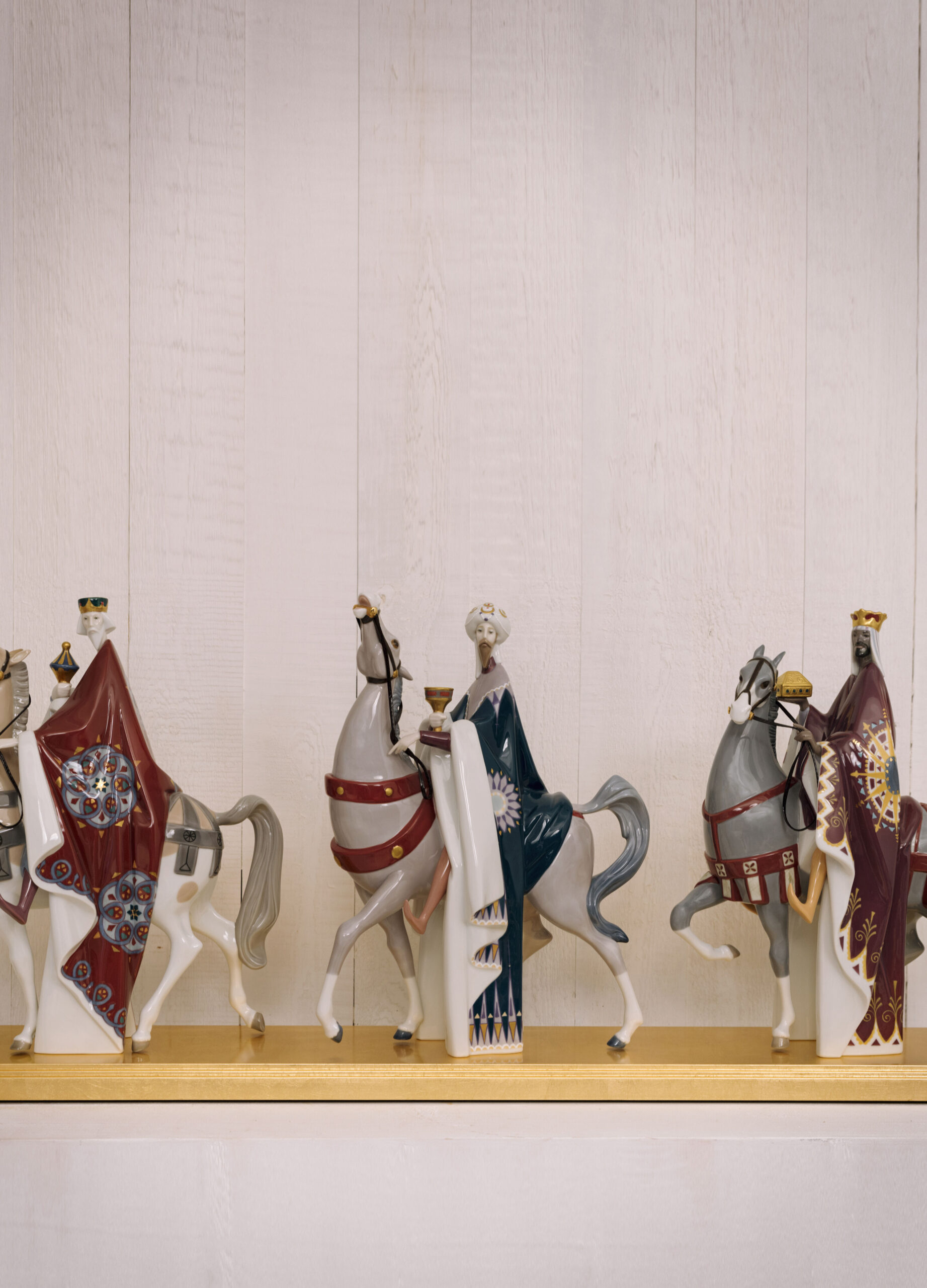 The three wise men which were first depicted by the brand in 1969 featured in High Porcelain, Lladrós maximum artistic category, with an attractive decoration. The Lladró brothers Juan, José and Vicente presented the original pieces as a gift to Pope Paul VI when they visited the Vatican in 1969. Soon afterwards, man stepped on the moon for the first time and the Pope in turn gave a king to each one of the three astronauts from Apollo 11 and spoke to them about the mission in which another three men were guided by a star to take a message to the entire Humanity.