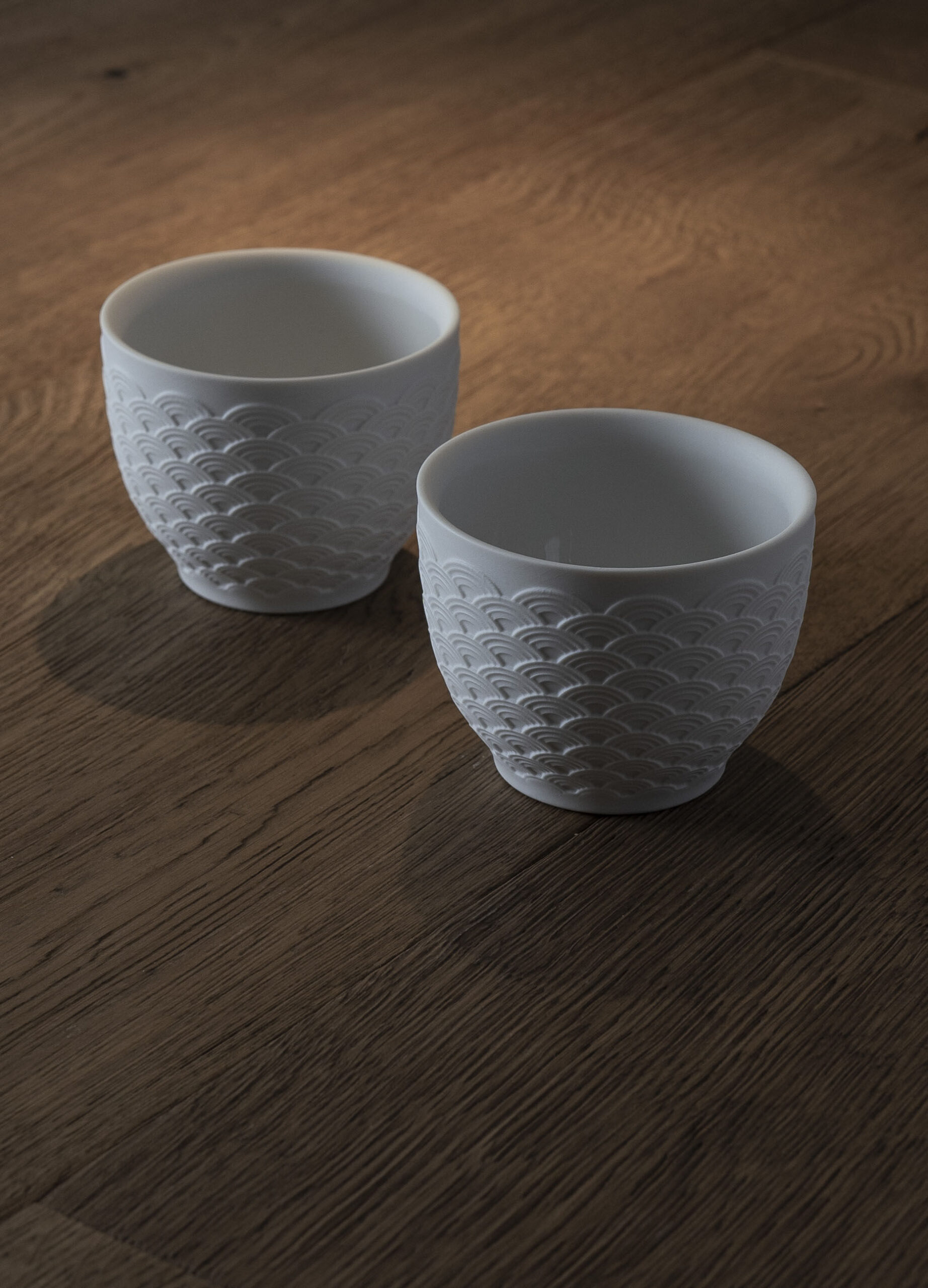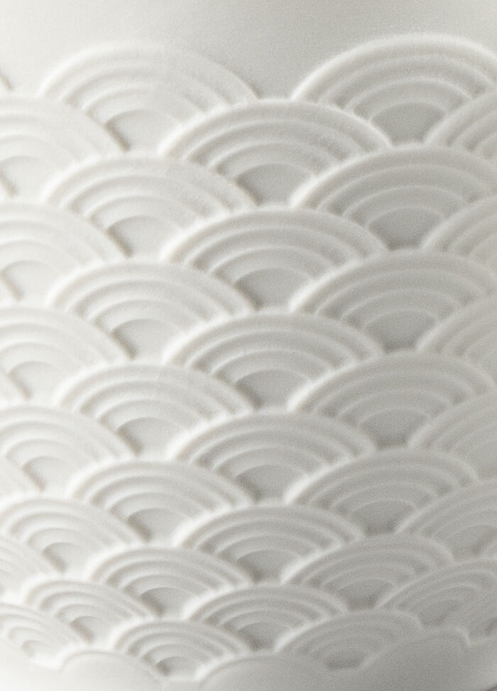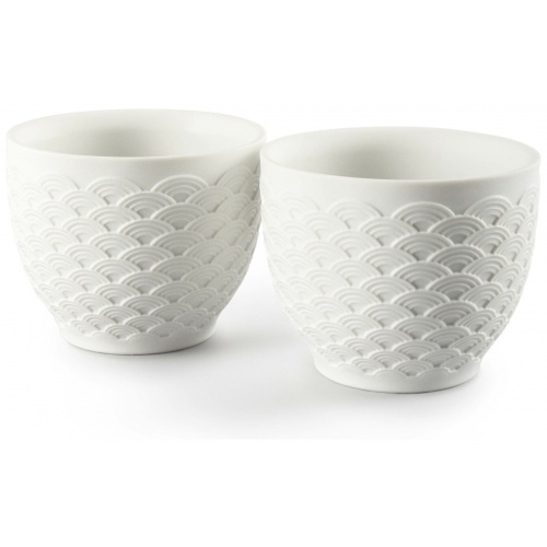 These bowls are made in porcelain white with a matte finish on the outside and a glazed finish inside and an elegant geometrical decoration inspired by the scales of the koi carp. Perfect as a wedding favor, for special occasions or as a commemorative gift. Handcrafted in the LladrĂ³ workshops in Spain.