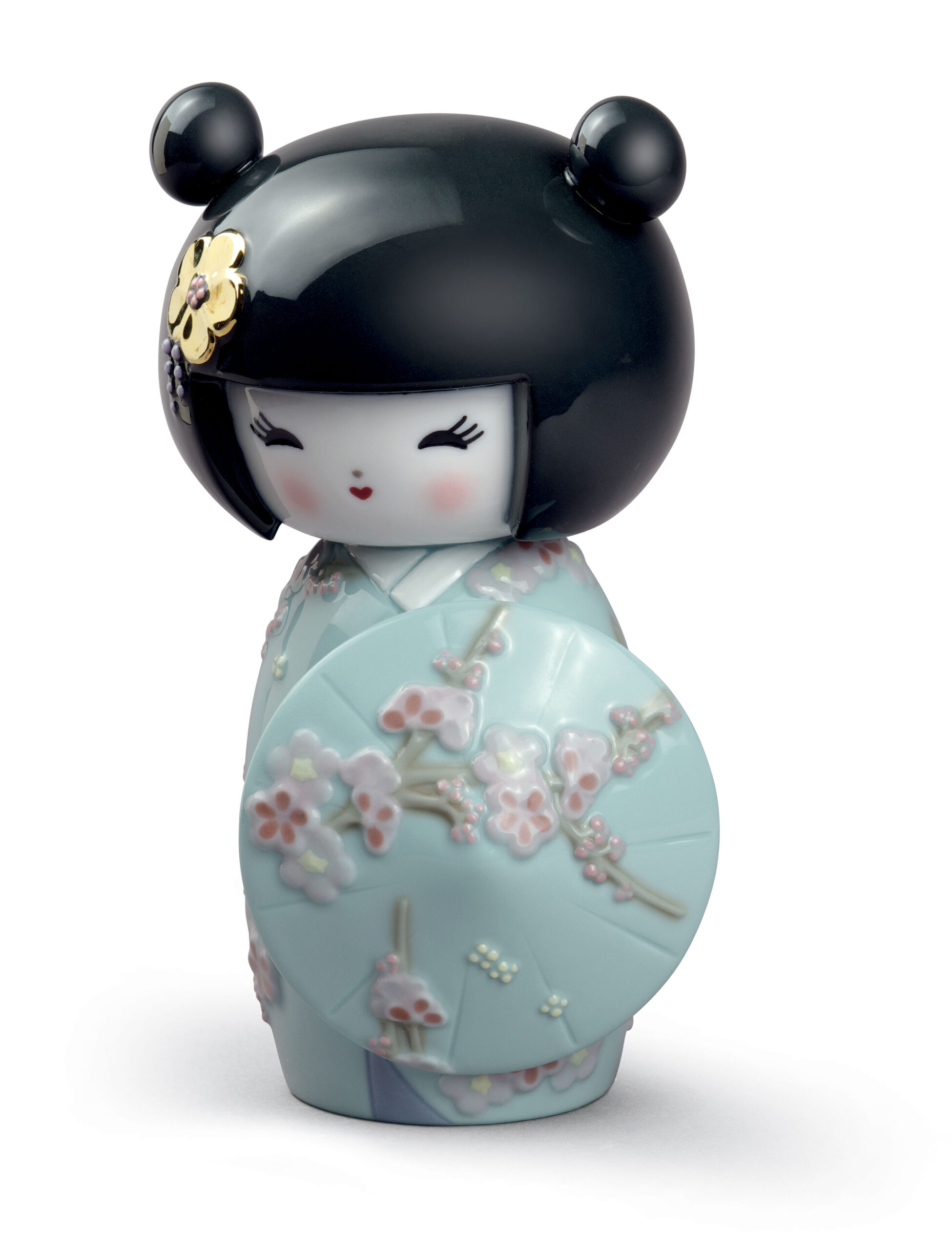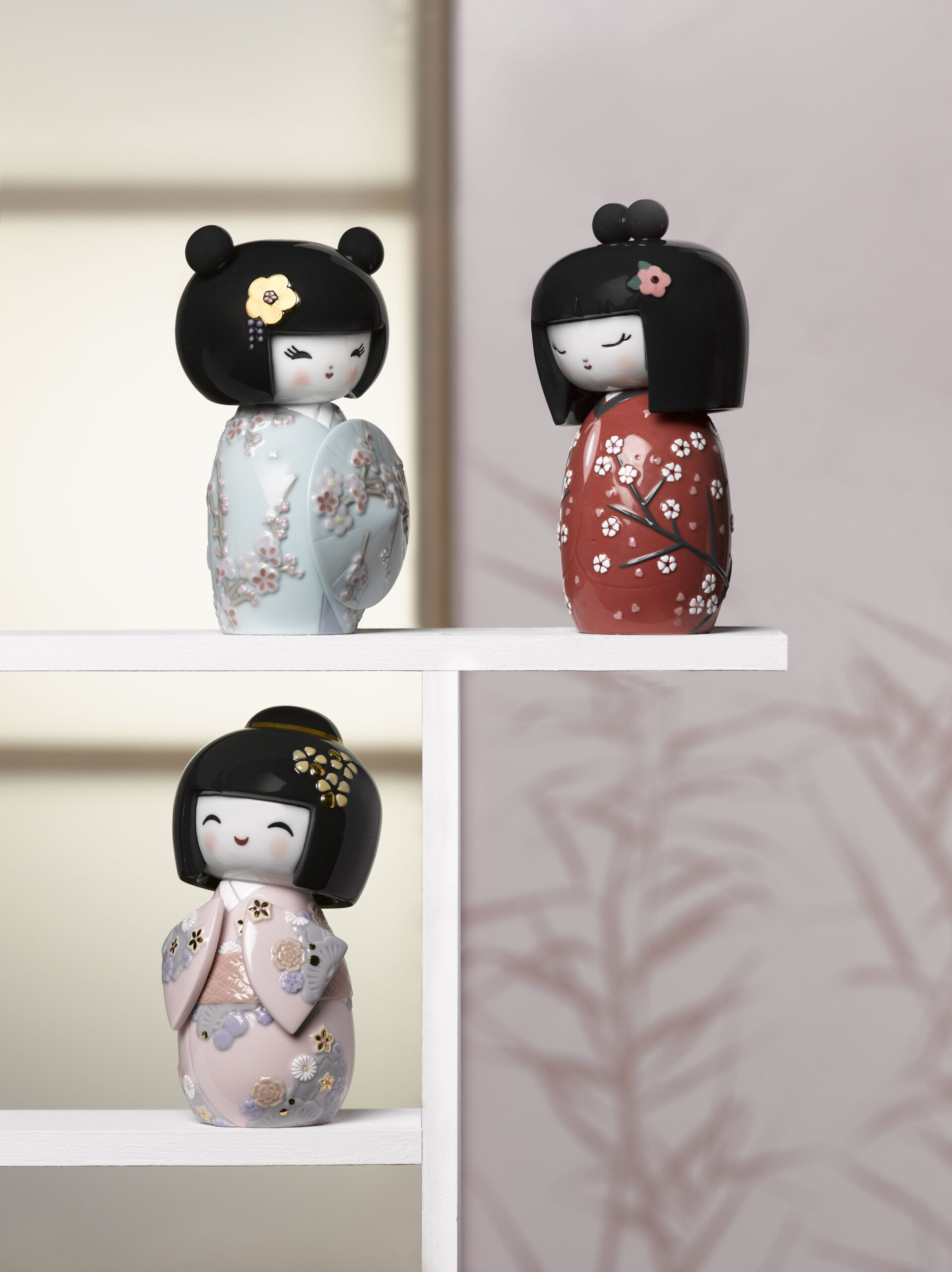LladrĂ³ has borrowed inspiration from Kokeshi, the Japanese wooden dolls, for this three-piece series. These round-headed simple kokeshi without any visible arms or legs are adorable, lovable dolls with sweet, innocent expressions, always smiling and happy.